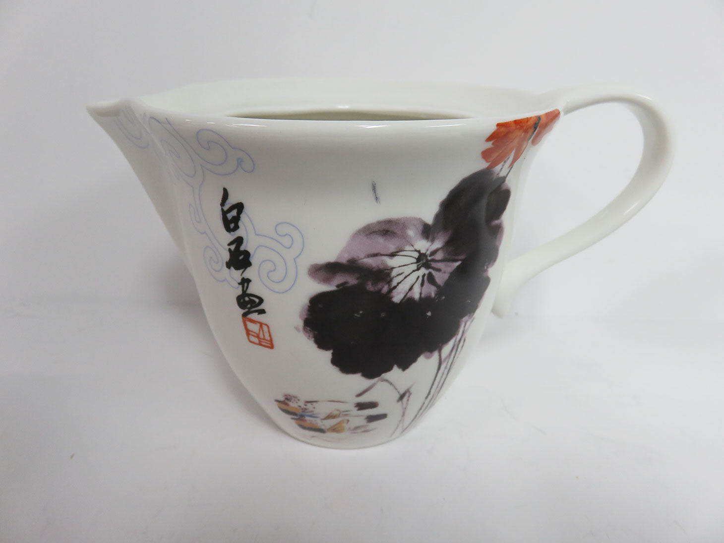 Mandarin lotus, pot with lid and 4 cups, in box, 6 pc 7' x 5.5" teapot, 2.25" x 3" cup