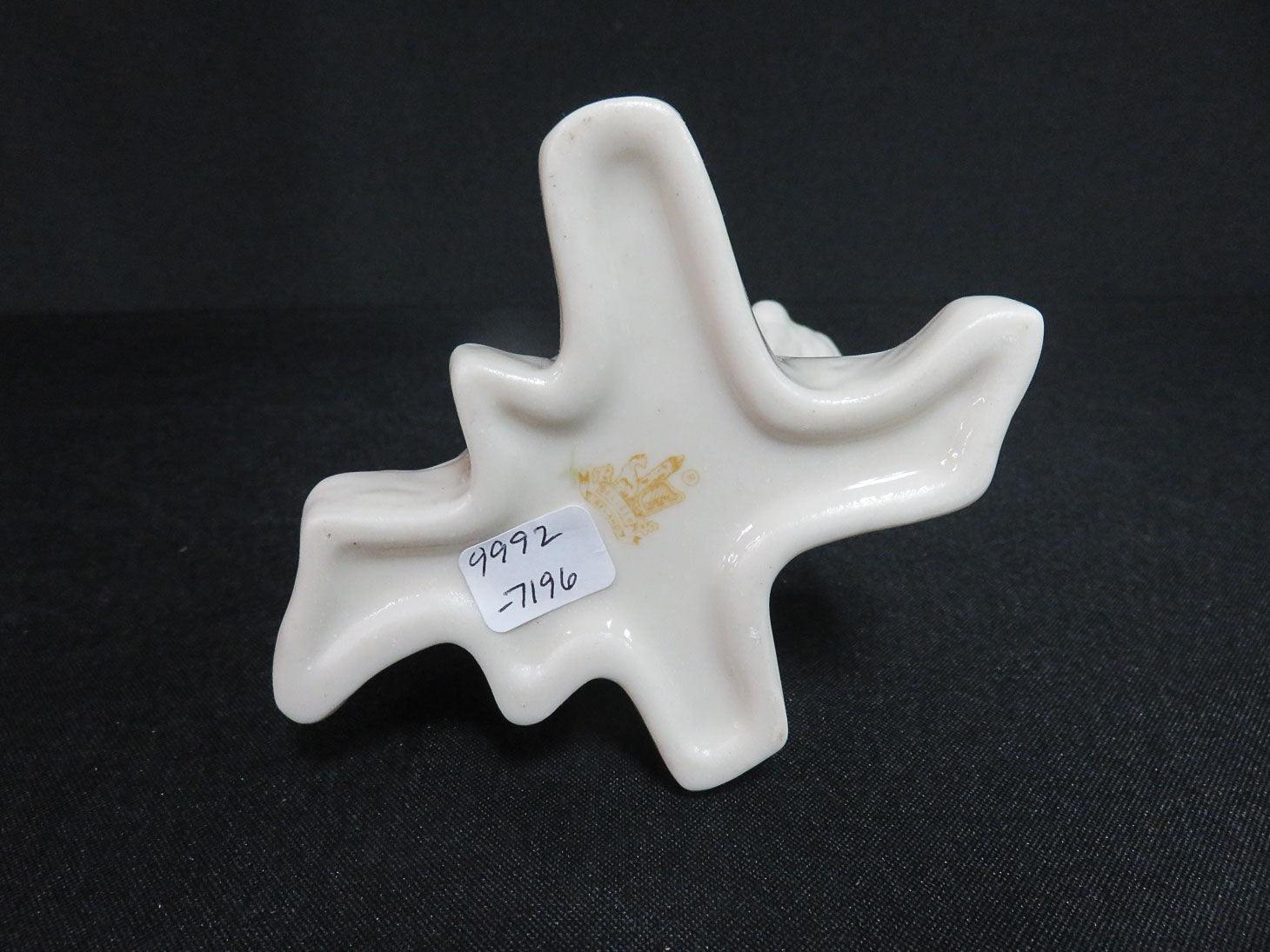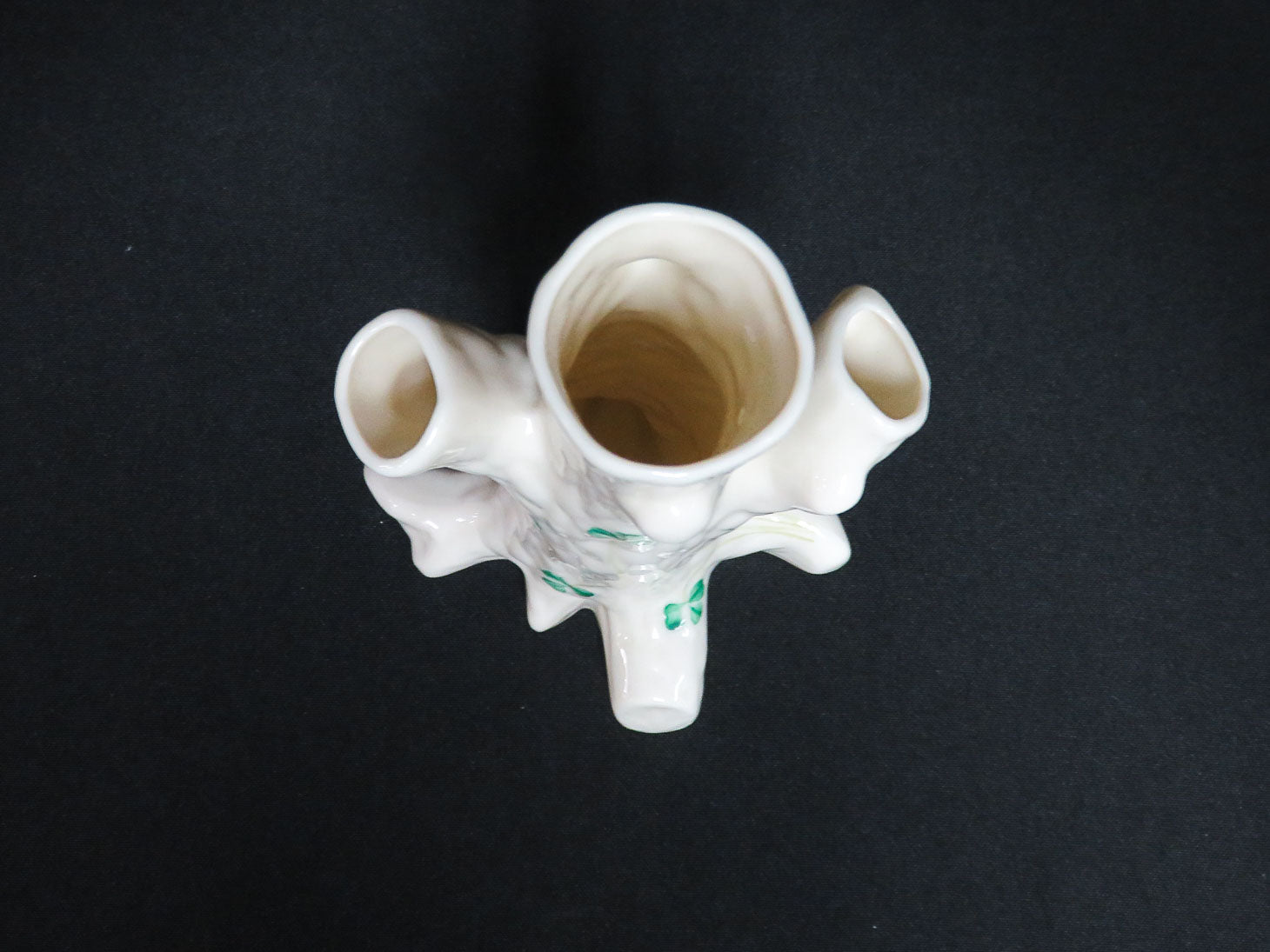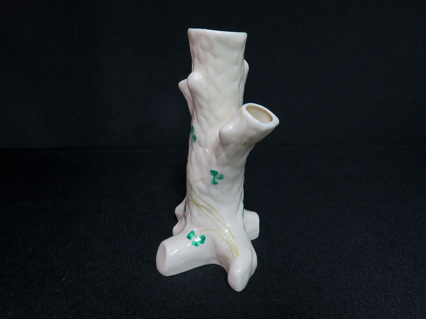 Tree trunk shape, 3 openings, cream with green shamrocks, 7th mark (brown - 1980-1993)