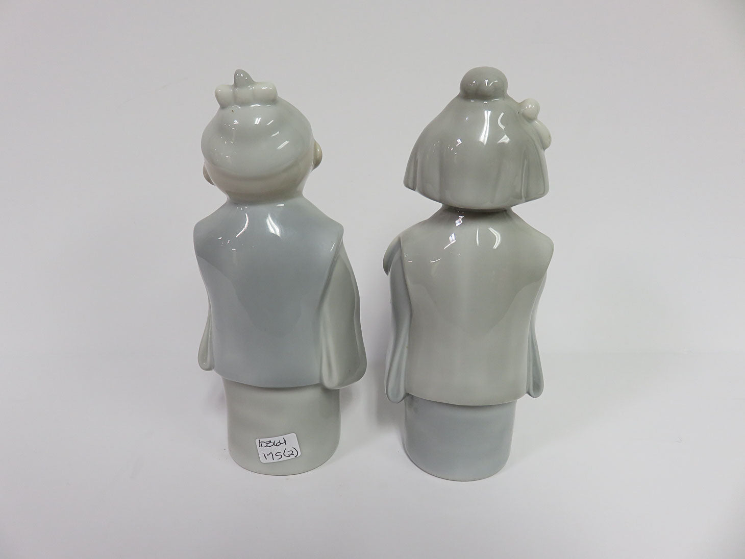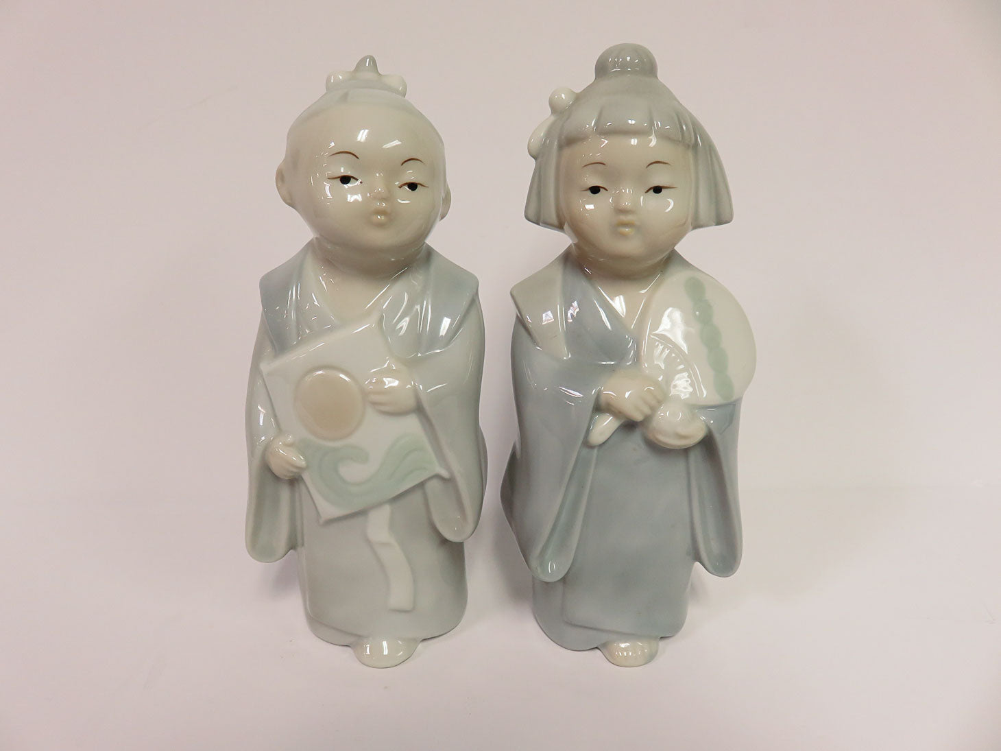 Pair, Asian, boy and girl, muted gray and cream (2 pcs) 7.25"