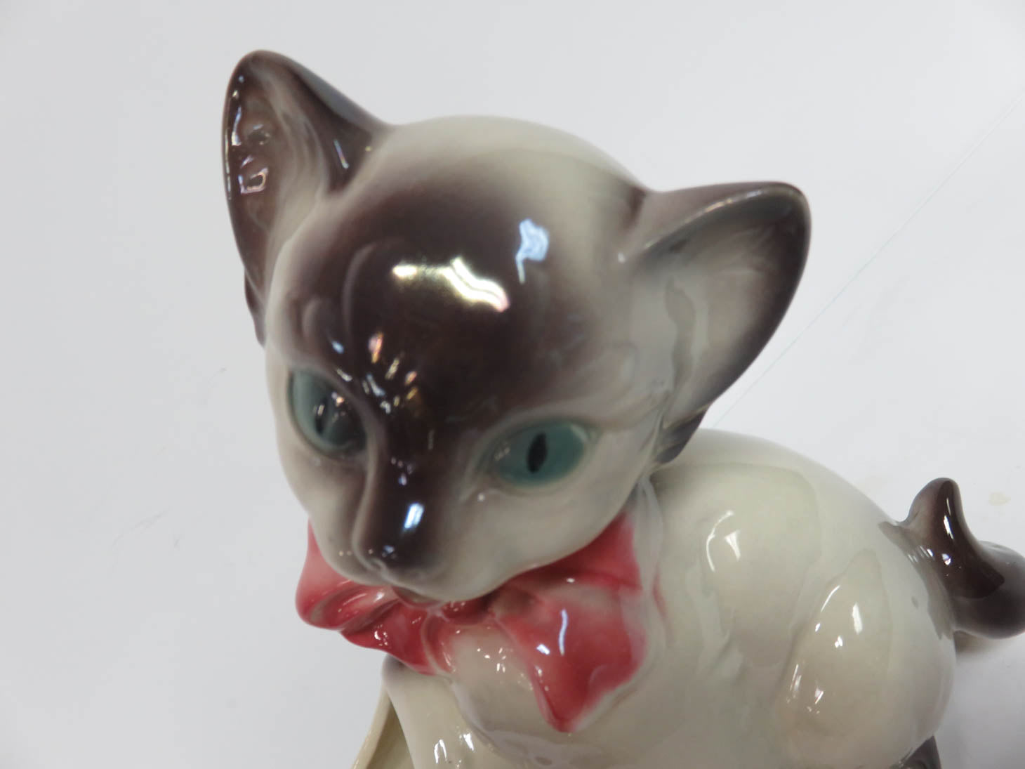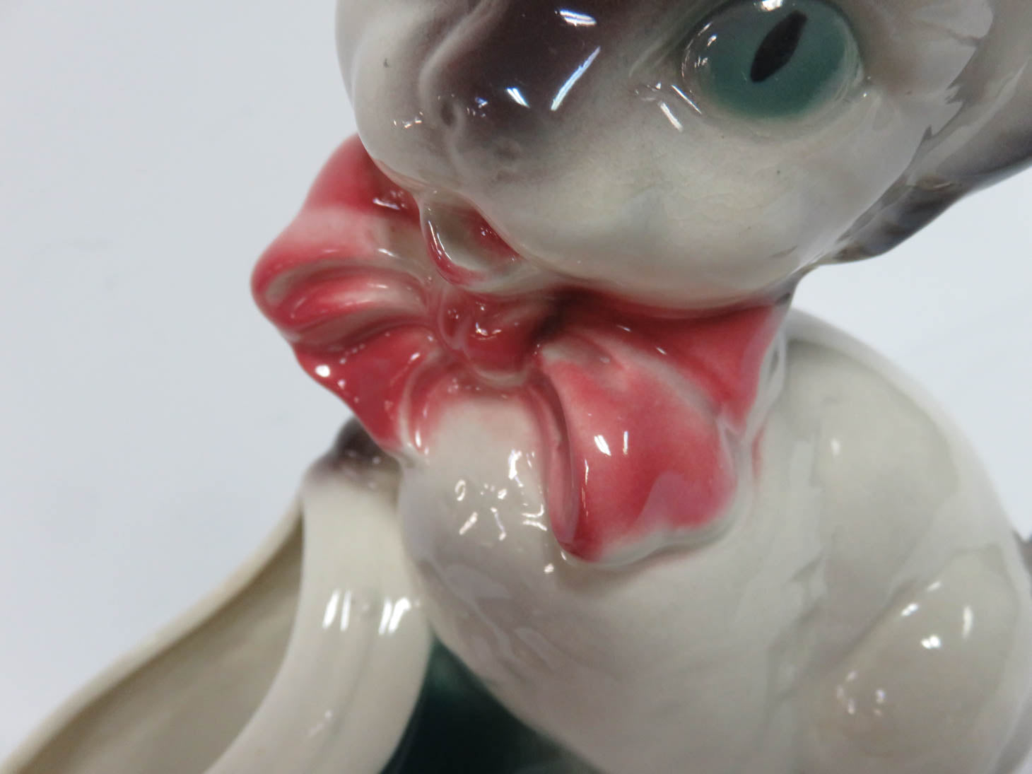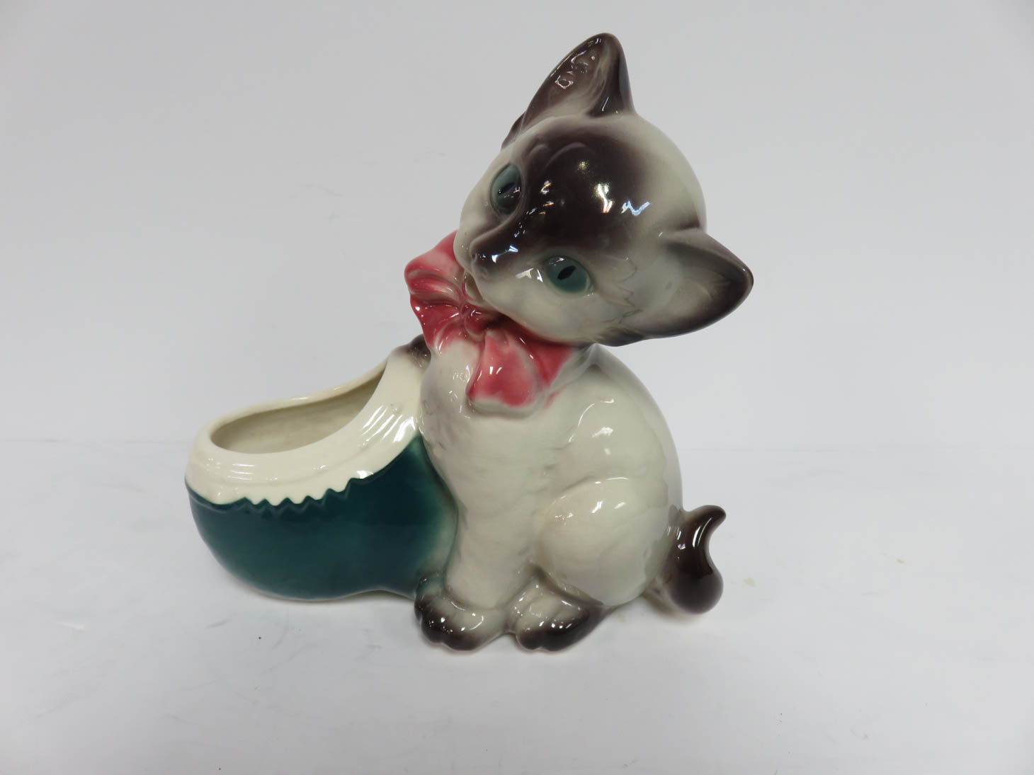 Vintage Royal Copley cat planter with green and ivory Dutch shoe