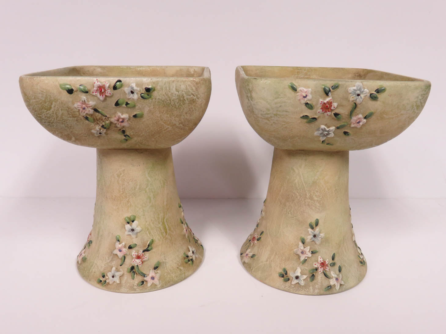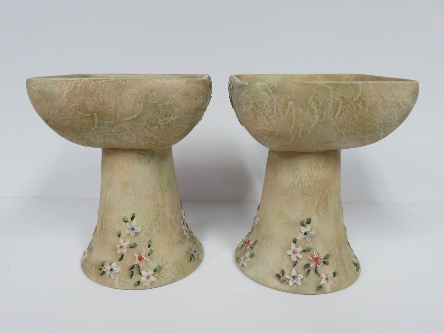 Pair of textured ceramic with dainty floral motif.