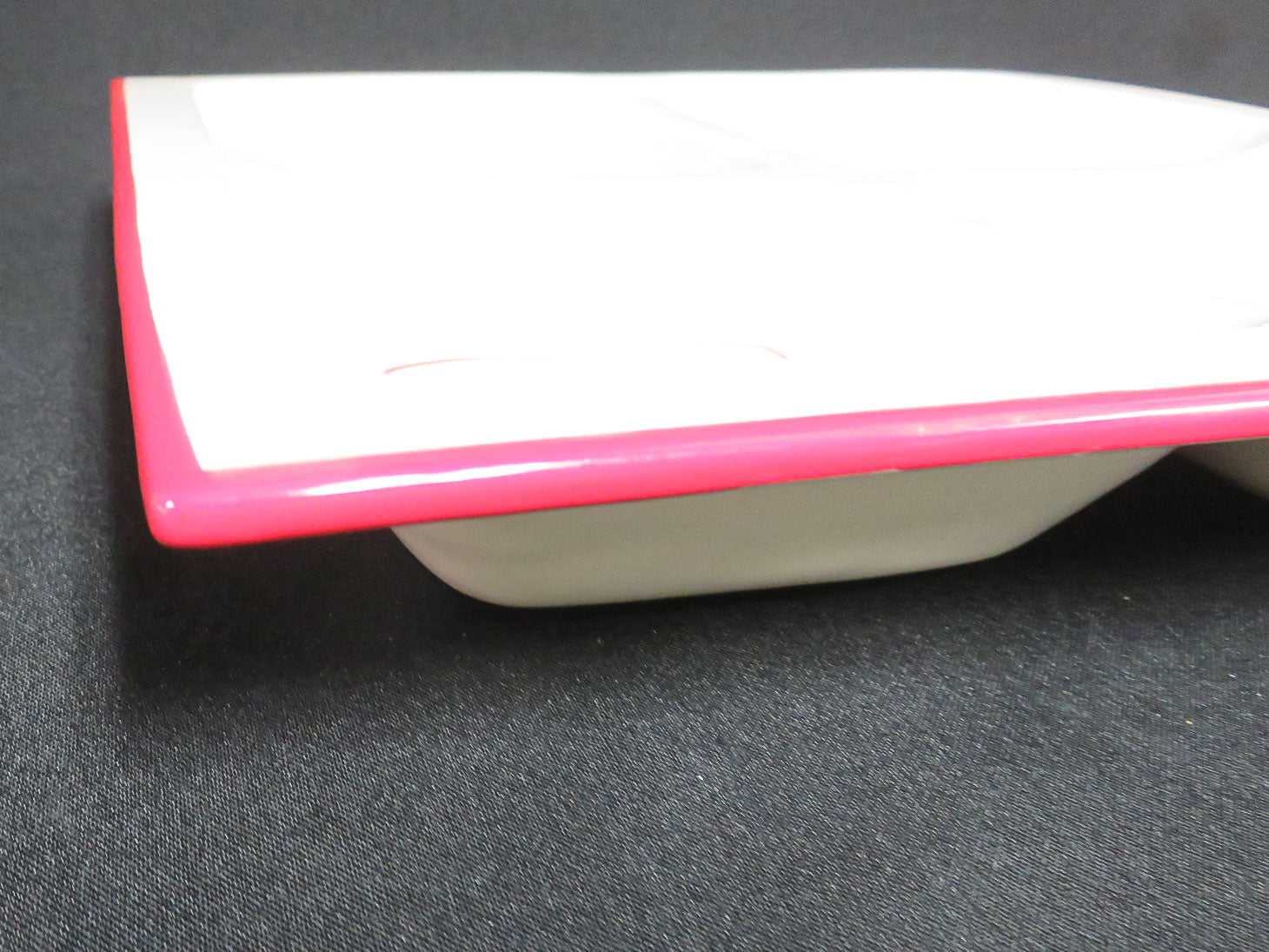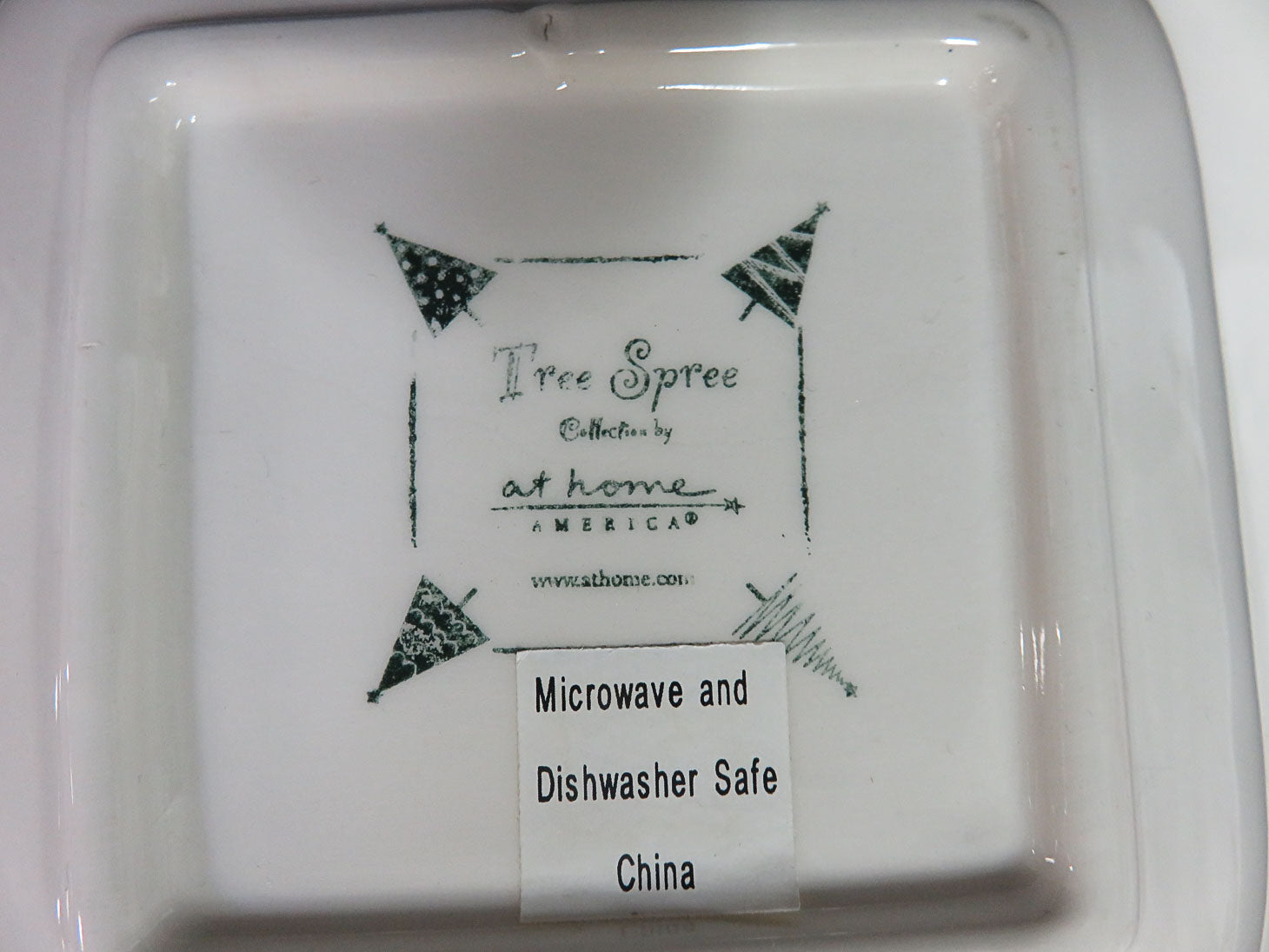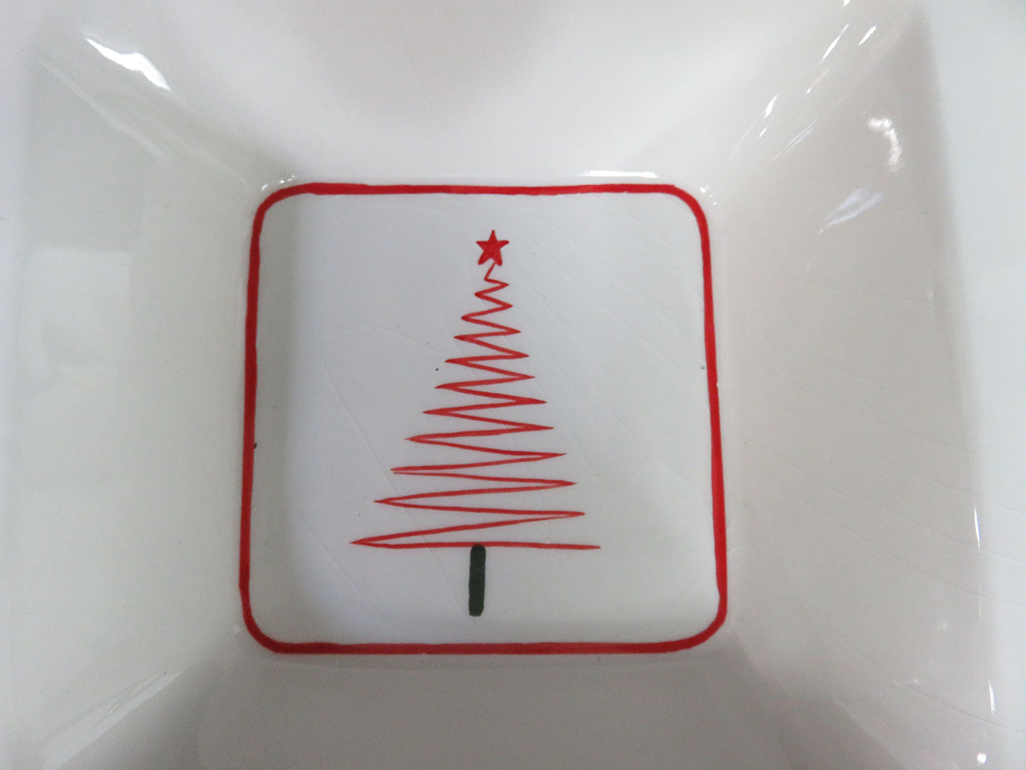 Tree Spree, 4 sections, white with red border, various Christmas tree designs 13" x 13" x 1.75"