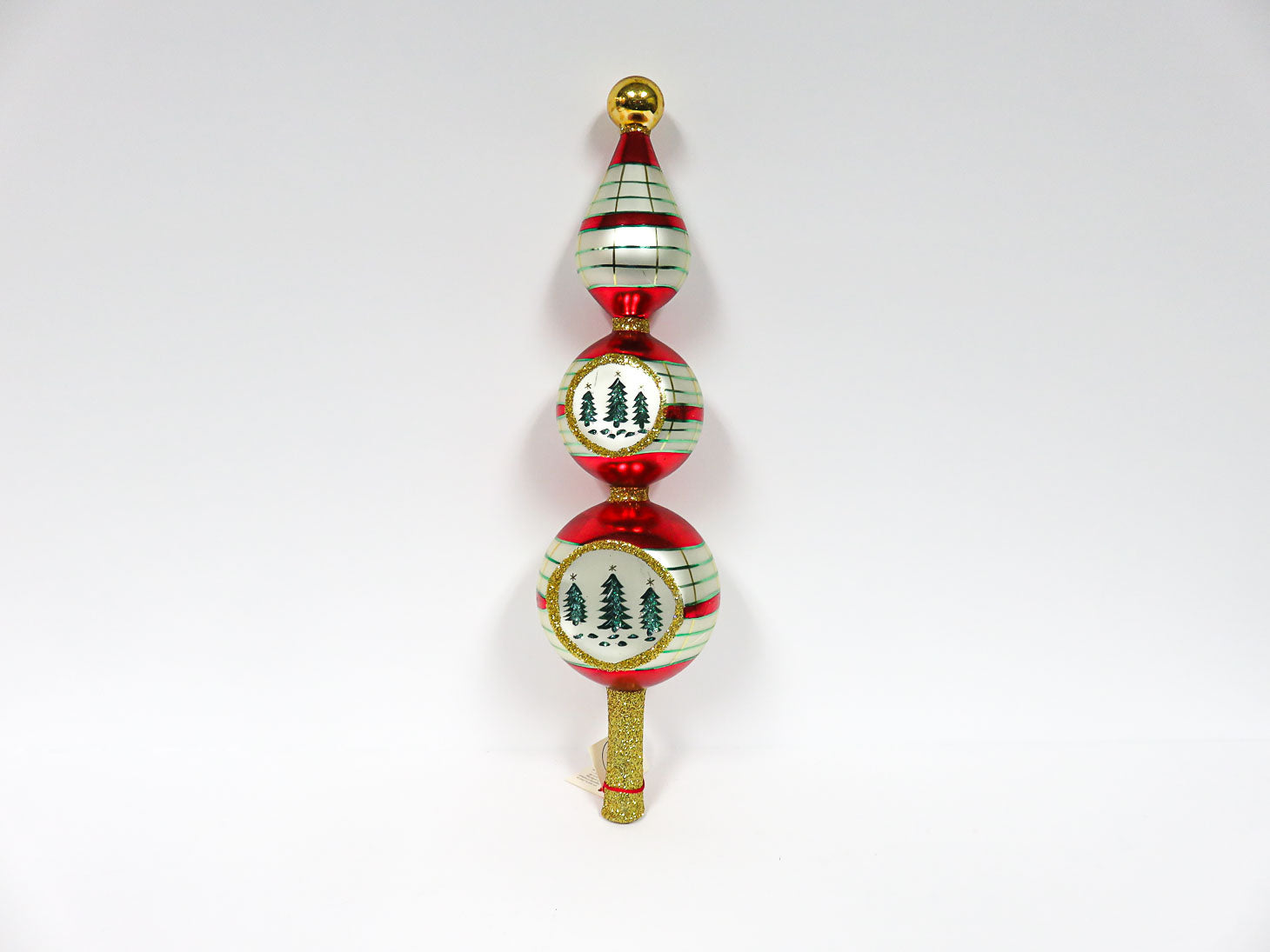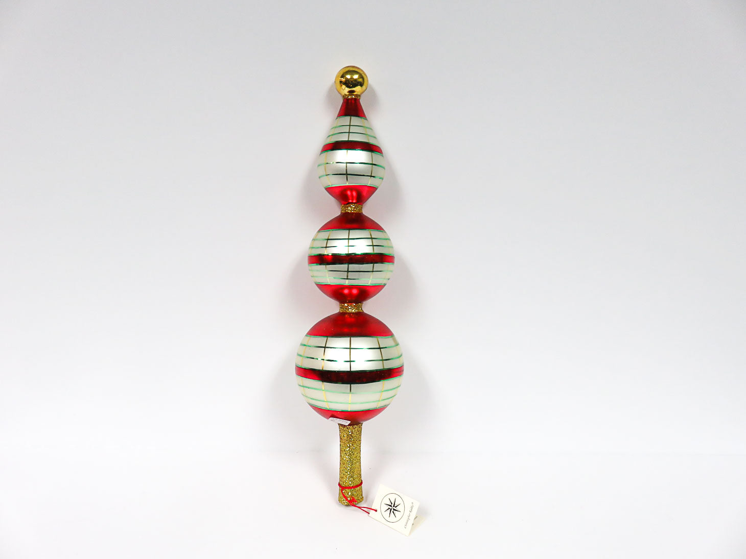 "Scotch Pine" 3 tiered red, green and white plaid orbs with trees