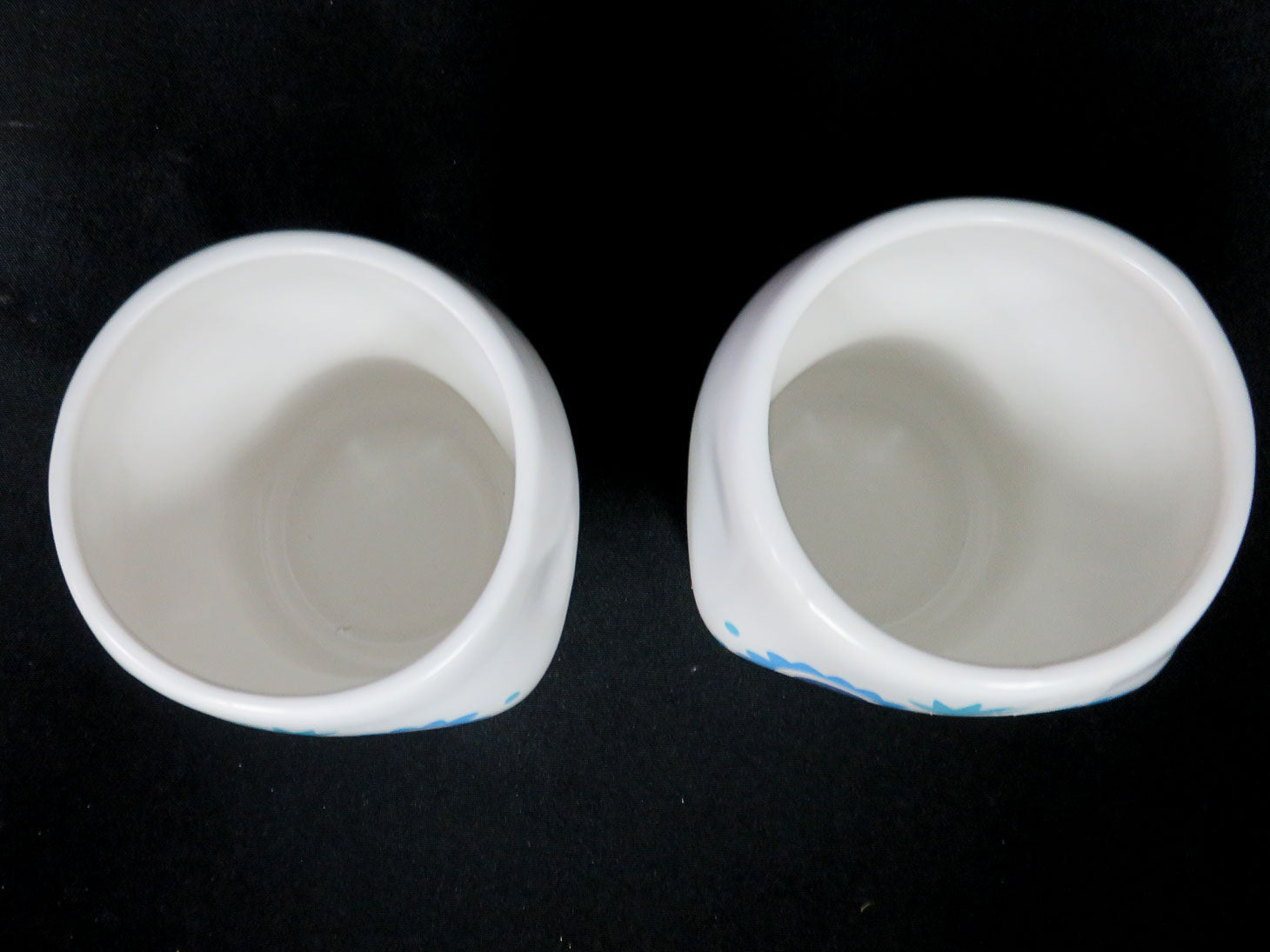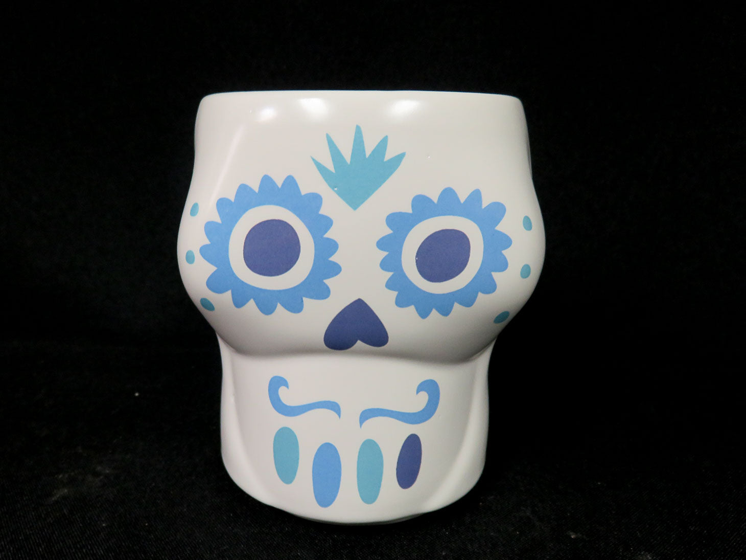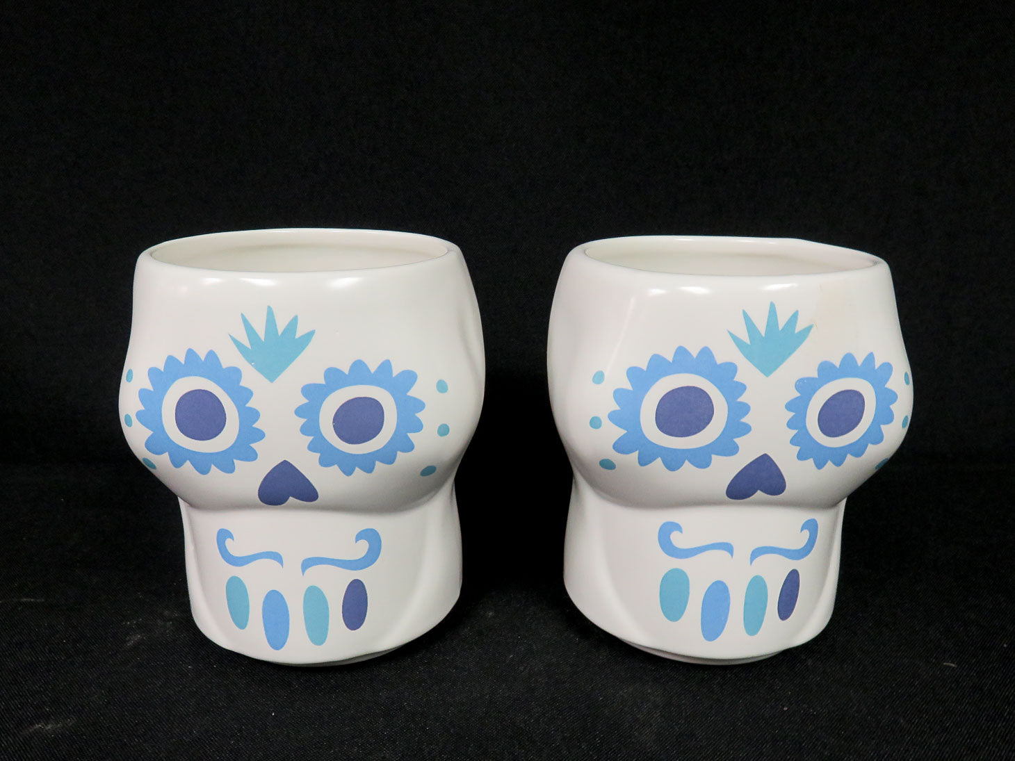 Pair, by Claudio Limon, Sugar Skull mugs, white with blue face outline