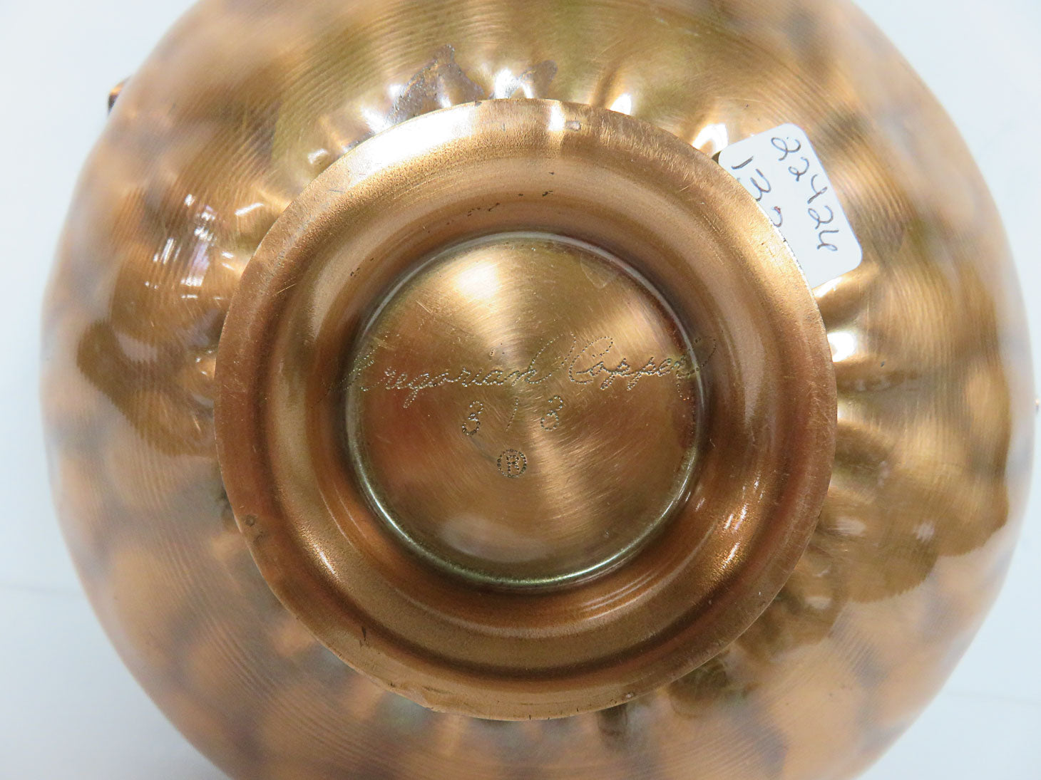 By "Gregorian", hammered design with scalloped edge, base