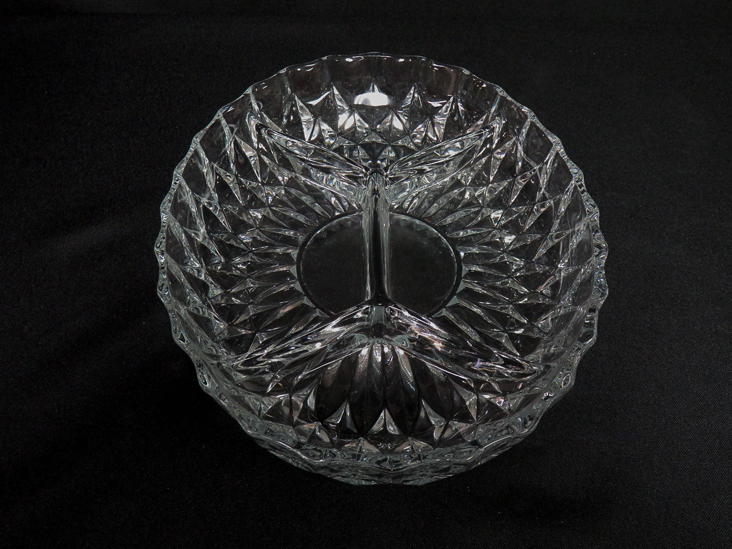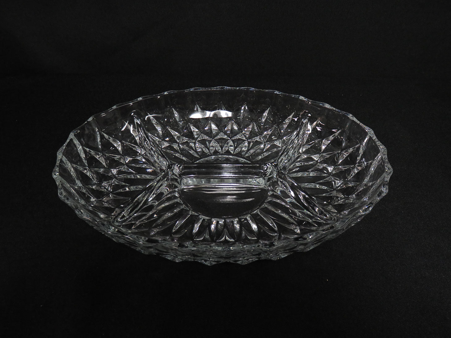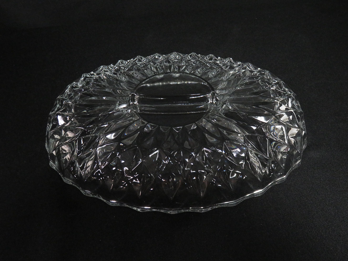 Oval with 4 sections, large diamond pattern and scalloped rim