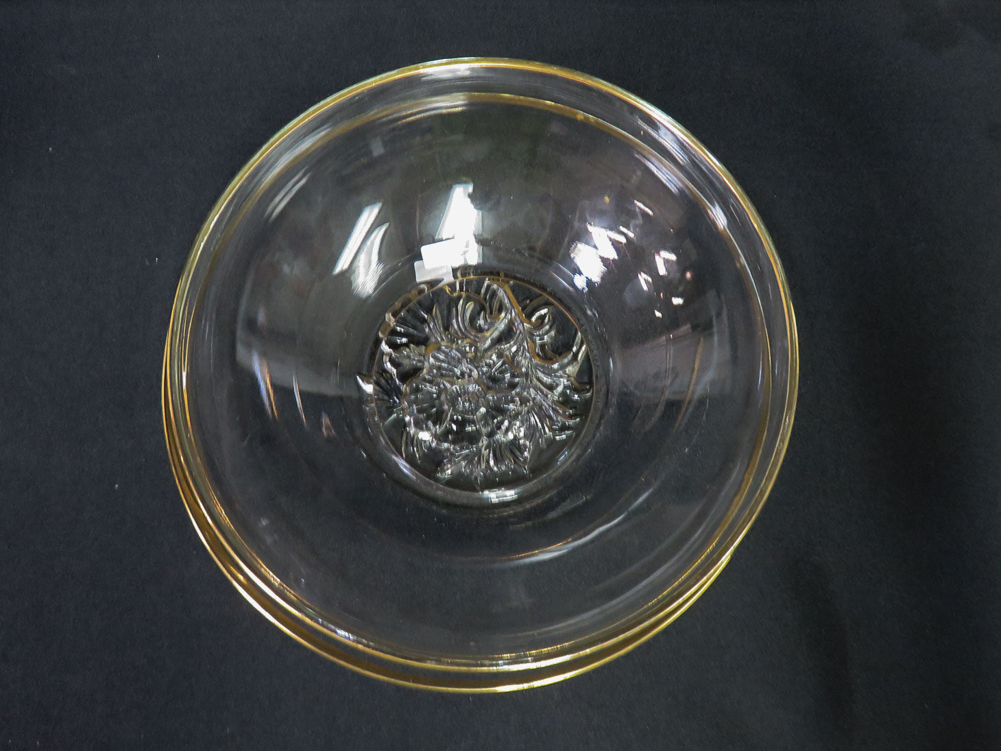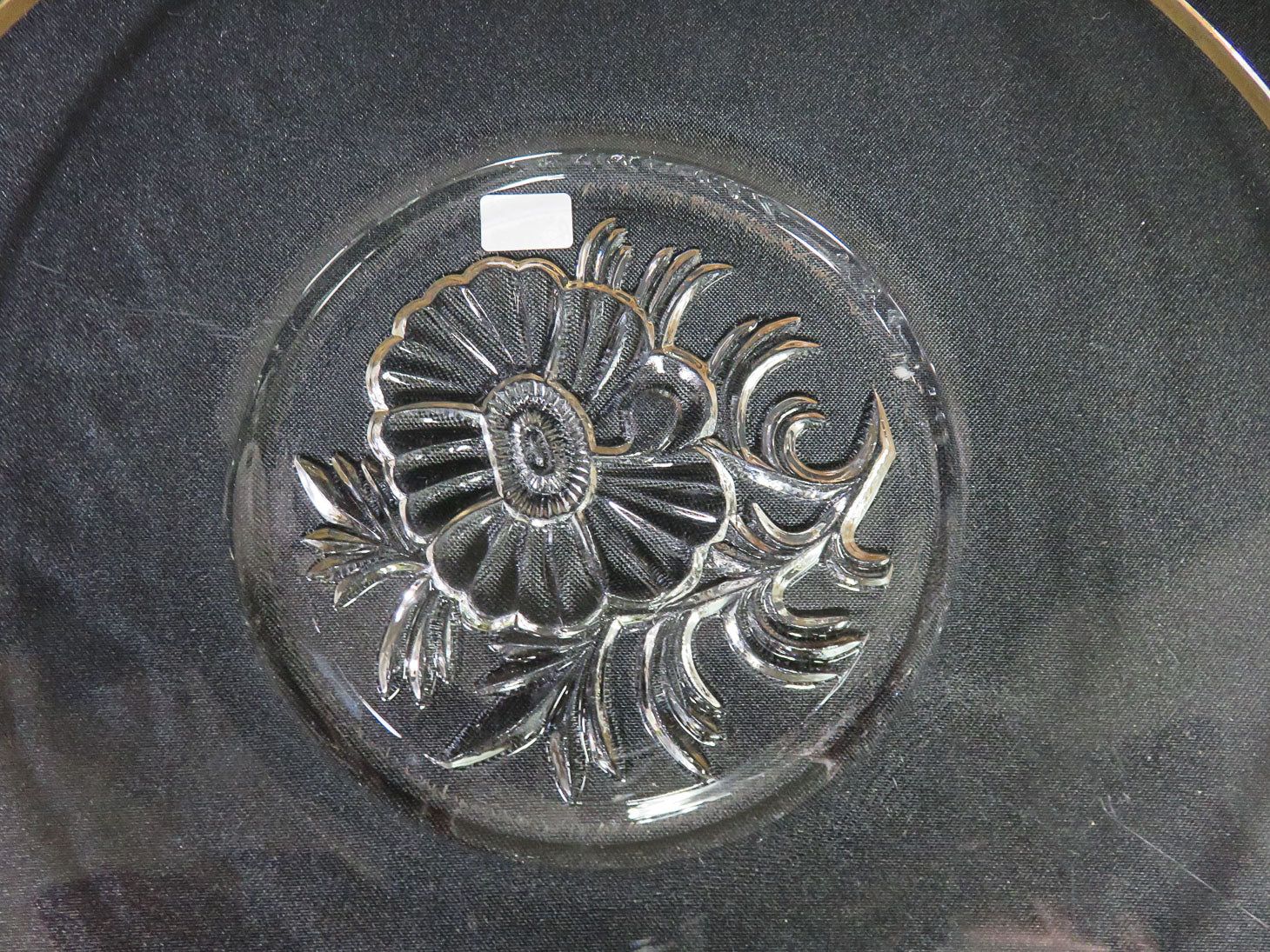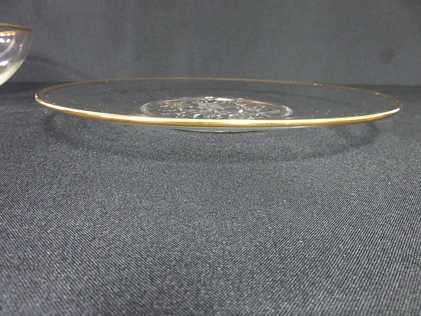 "It's Dilly" cear bowl and platter with gold trim, floral bases. Two pieces.