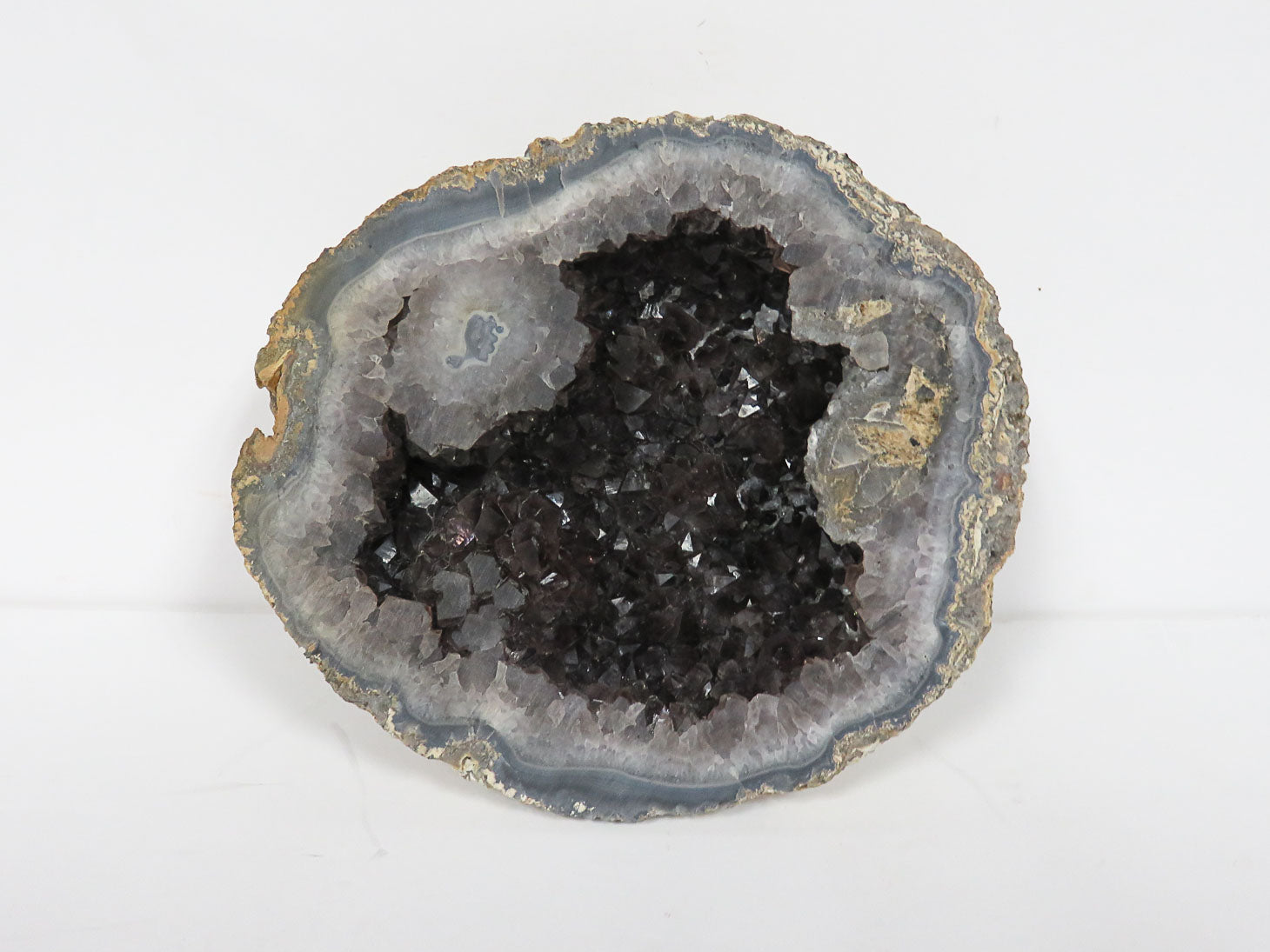 Polished with dark crystals in center