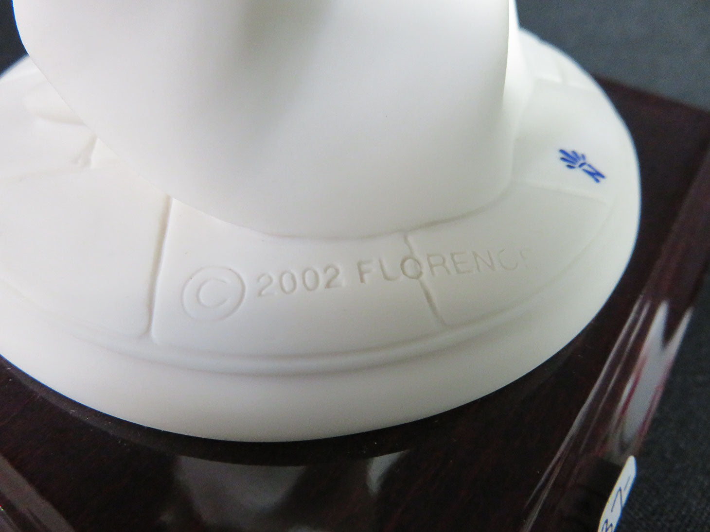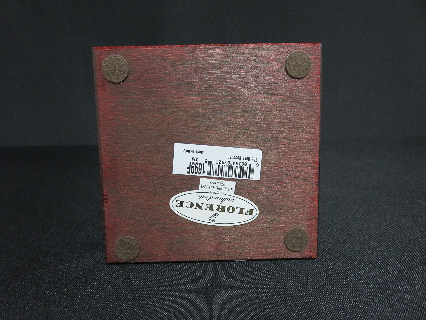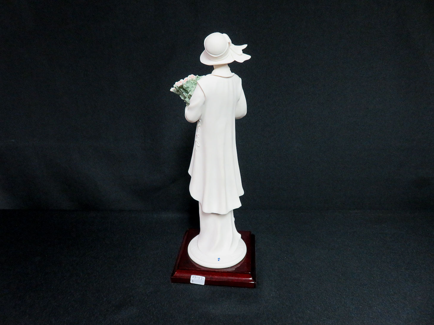 "The Rose Bouquet" Woman holding flowers, mat finish, on a square wood base.