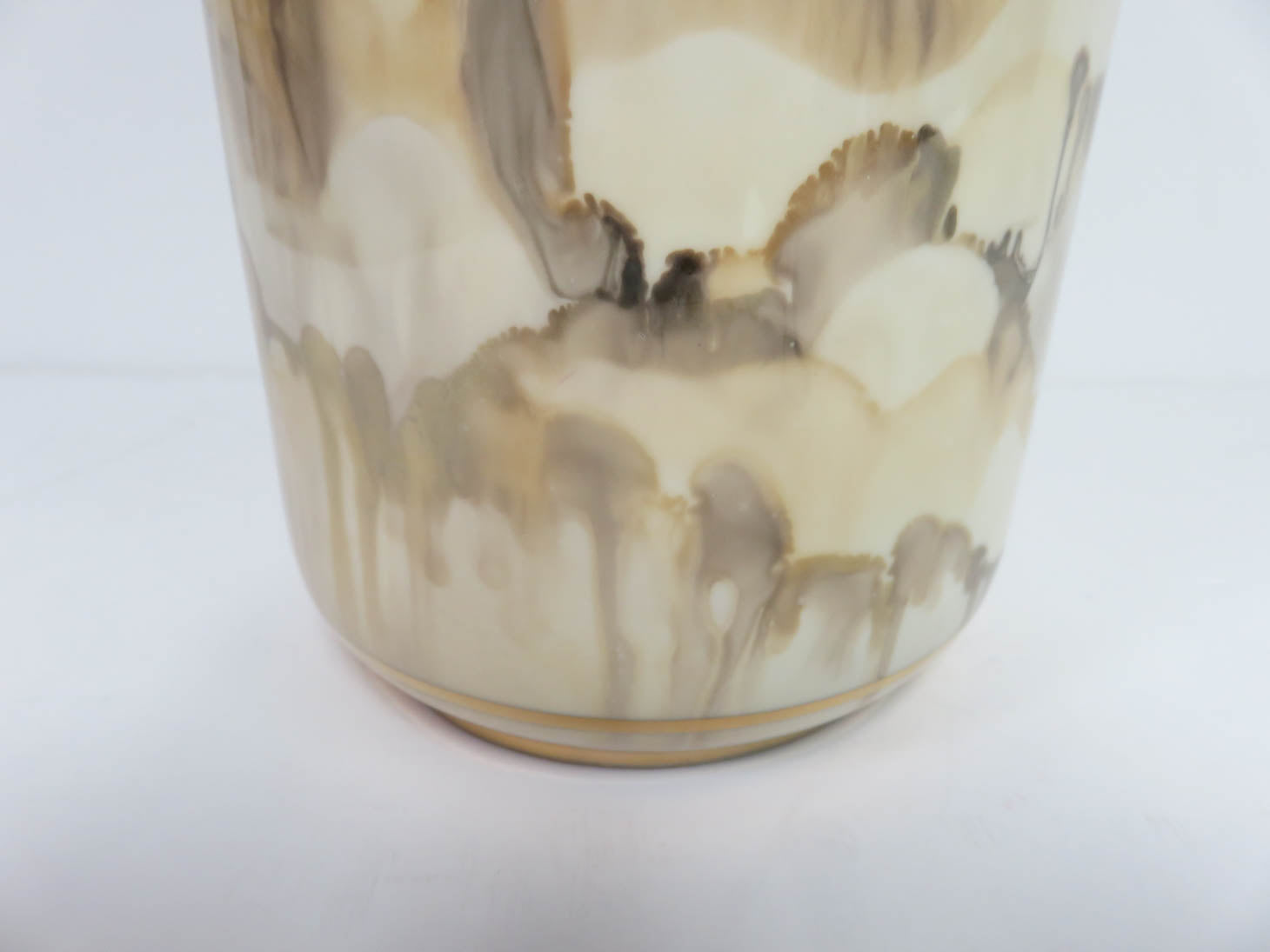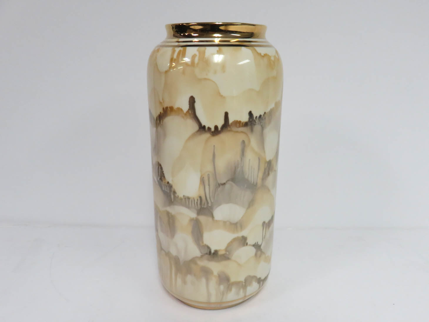 Item Number: 13143-21 Gold rim and base, abstract ink-effect water color design in earth tones 11.5" H