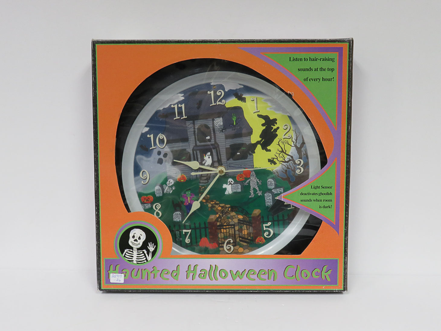 Haunted Halloween clock in box, light sensor, ghoulish sounds