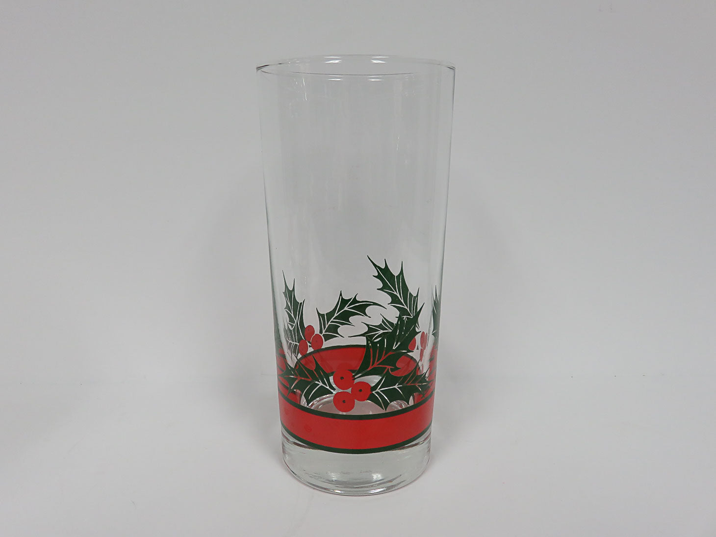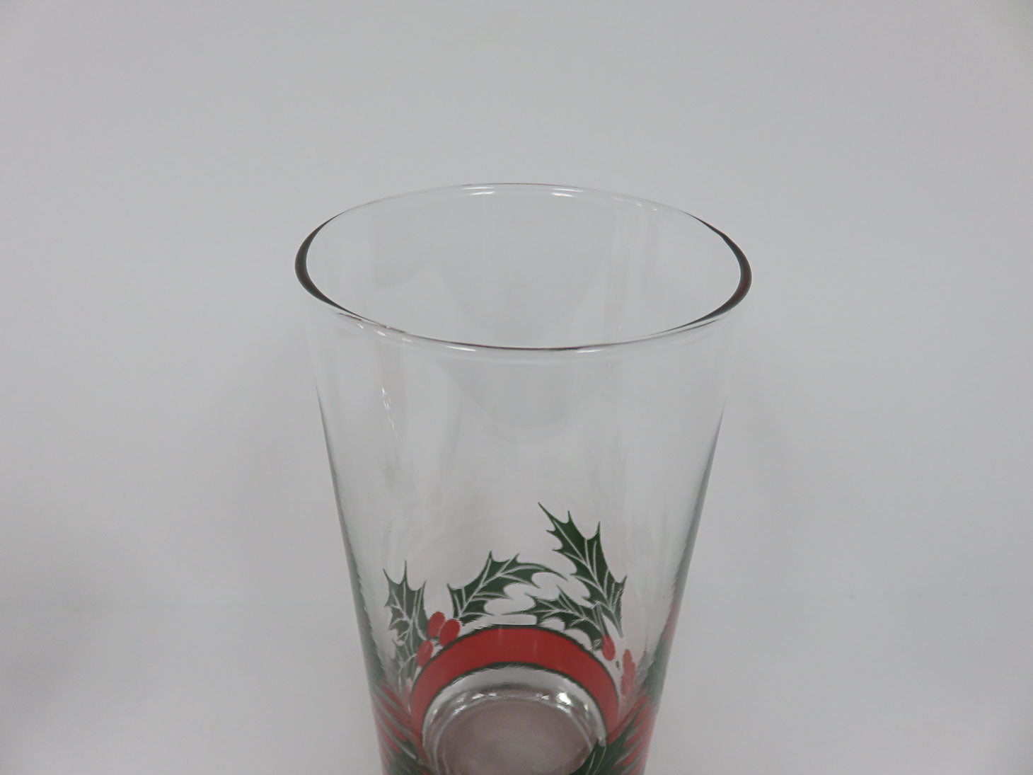 Set of 4, Bright red and green bands and berry motif. Holds 14oz.