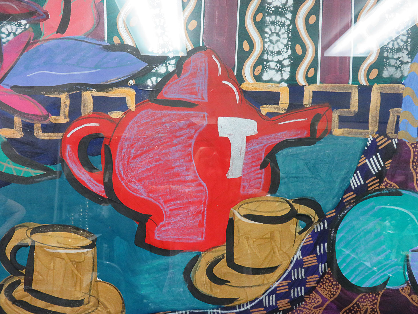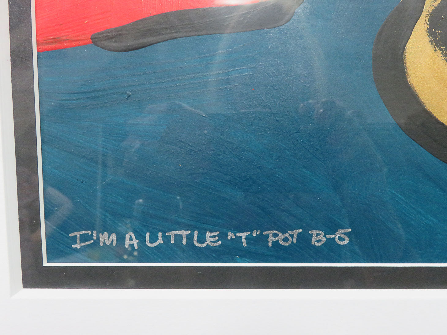 "I'm a Little Teapot", "B-5", painting on paper, in silver ribbed frame, frame damage on corner
