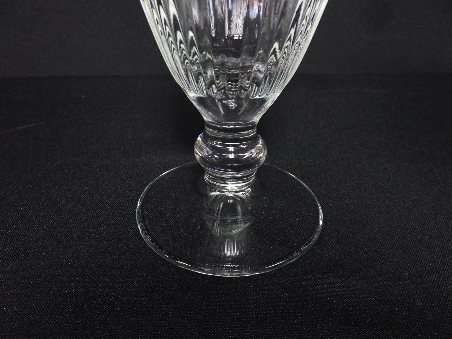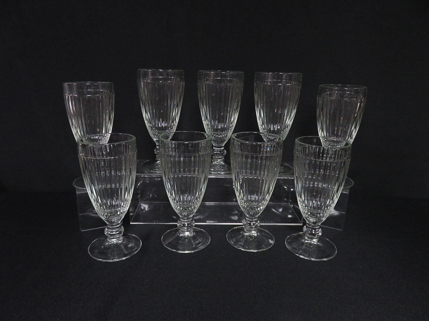 Set of 9, ribbed with clear band at top, orb stem and round base