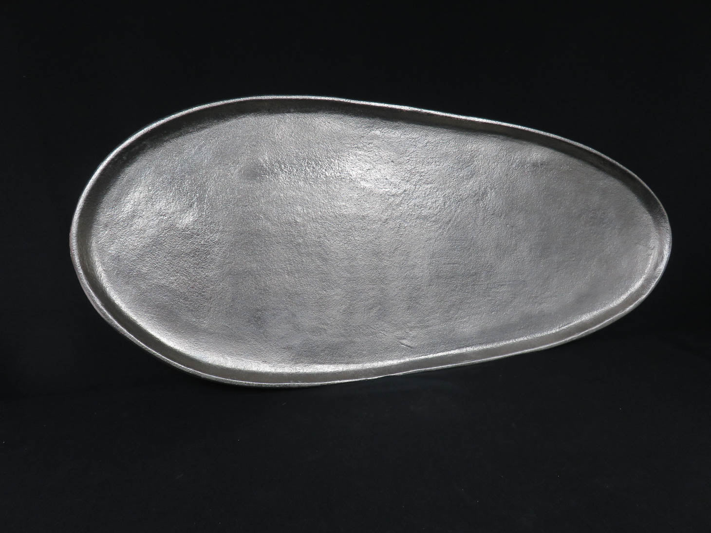 Asymetrical, oval, silver metal, textured finish
