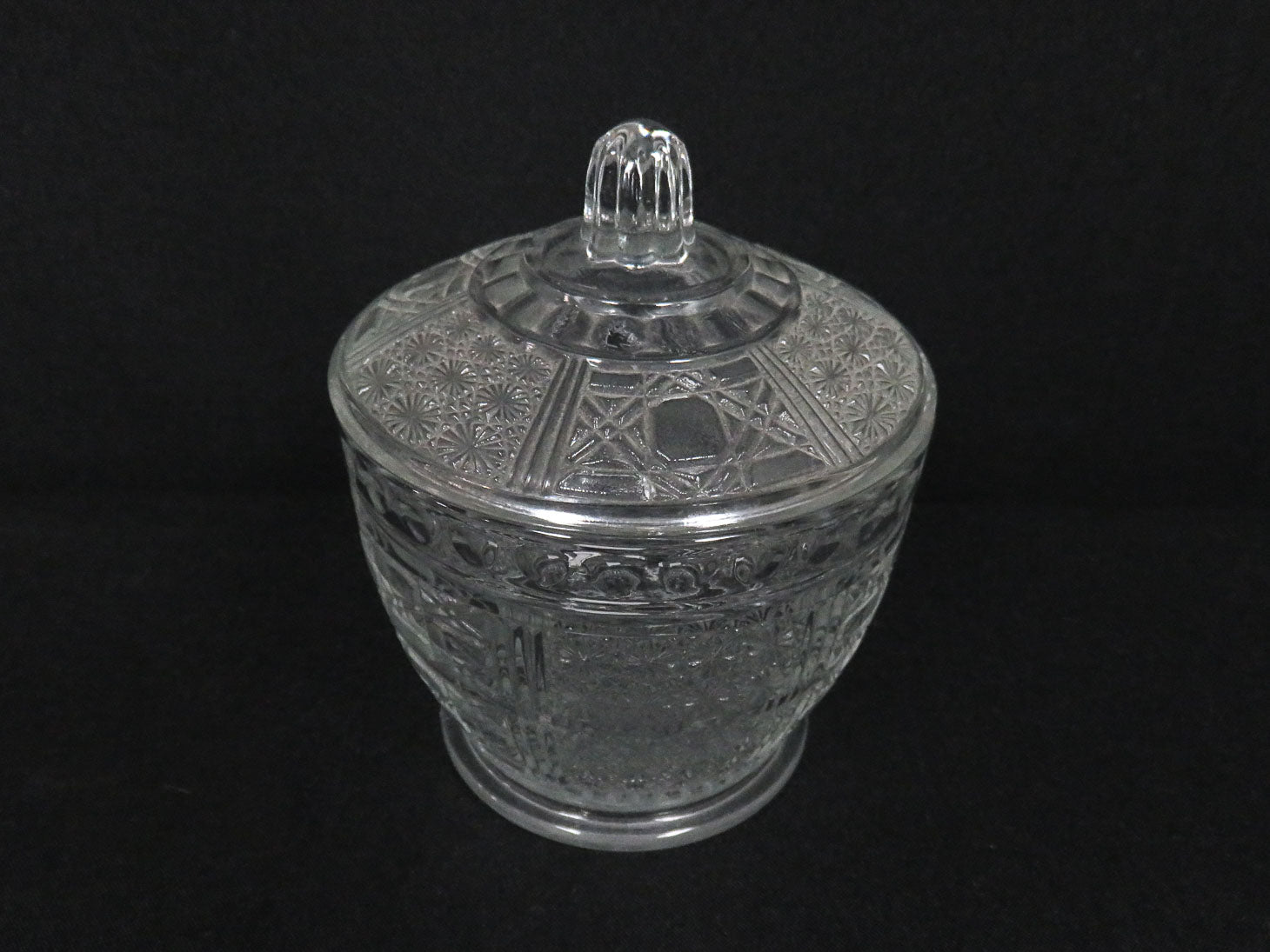 Clear, Daisy and Cane pattern, thumbprint edge, includes lid (2 pcs)
