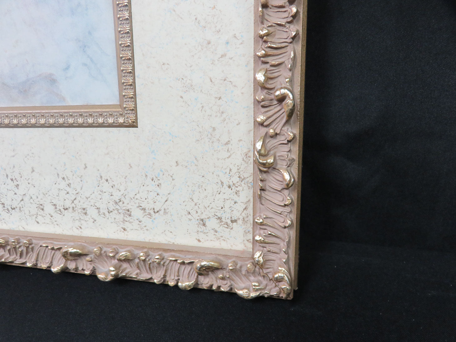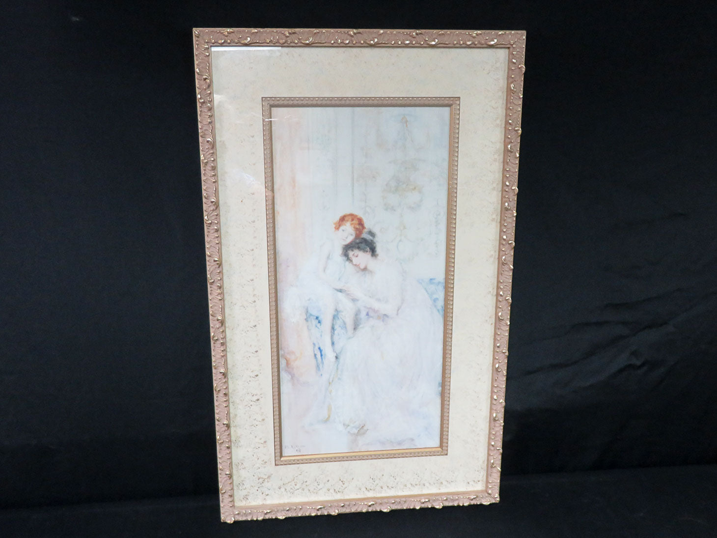 Mother and child, muted tones, gold frame with speckled mat, M L Gow