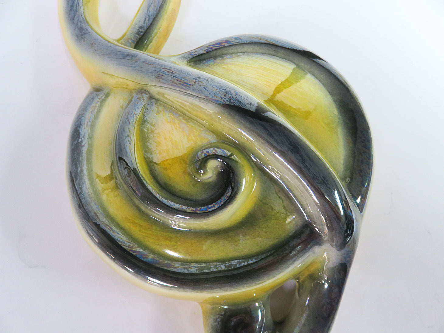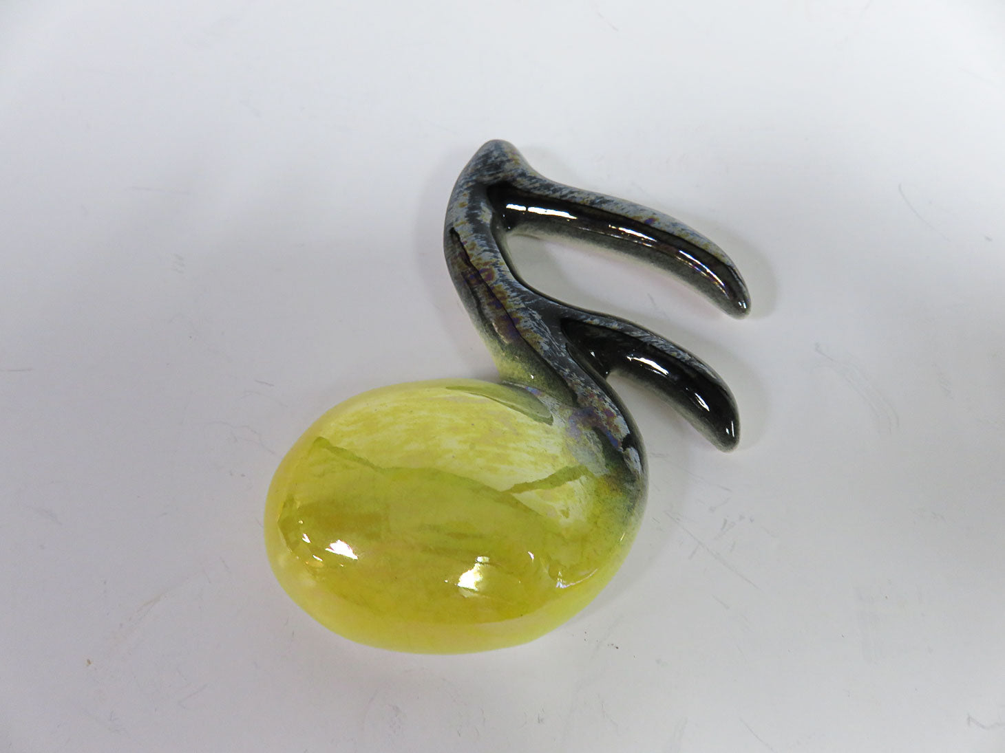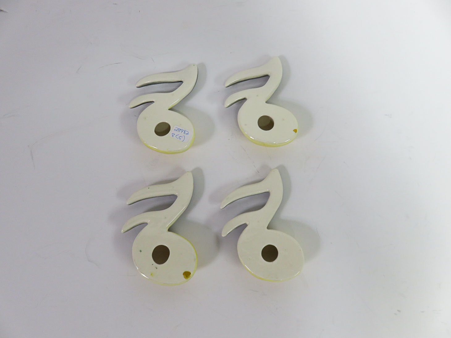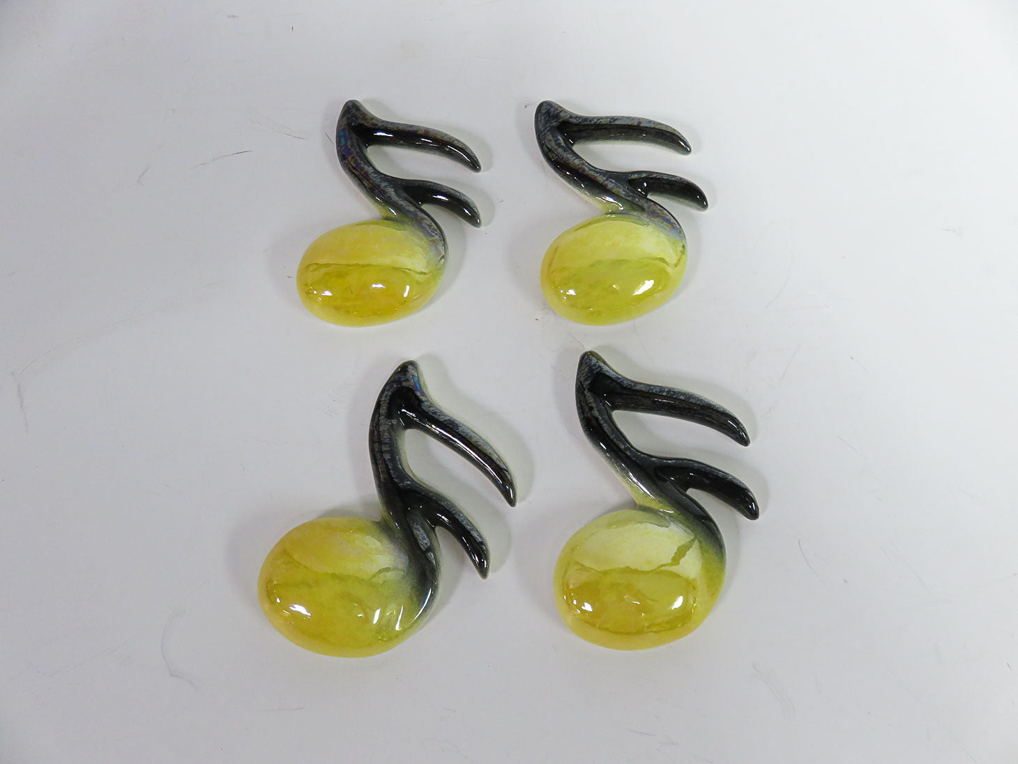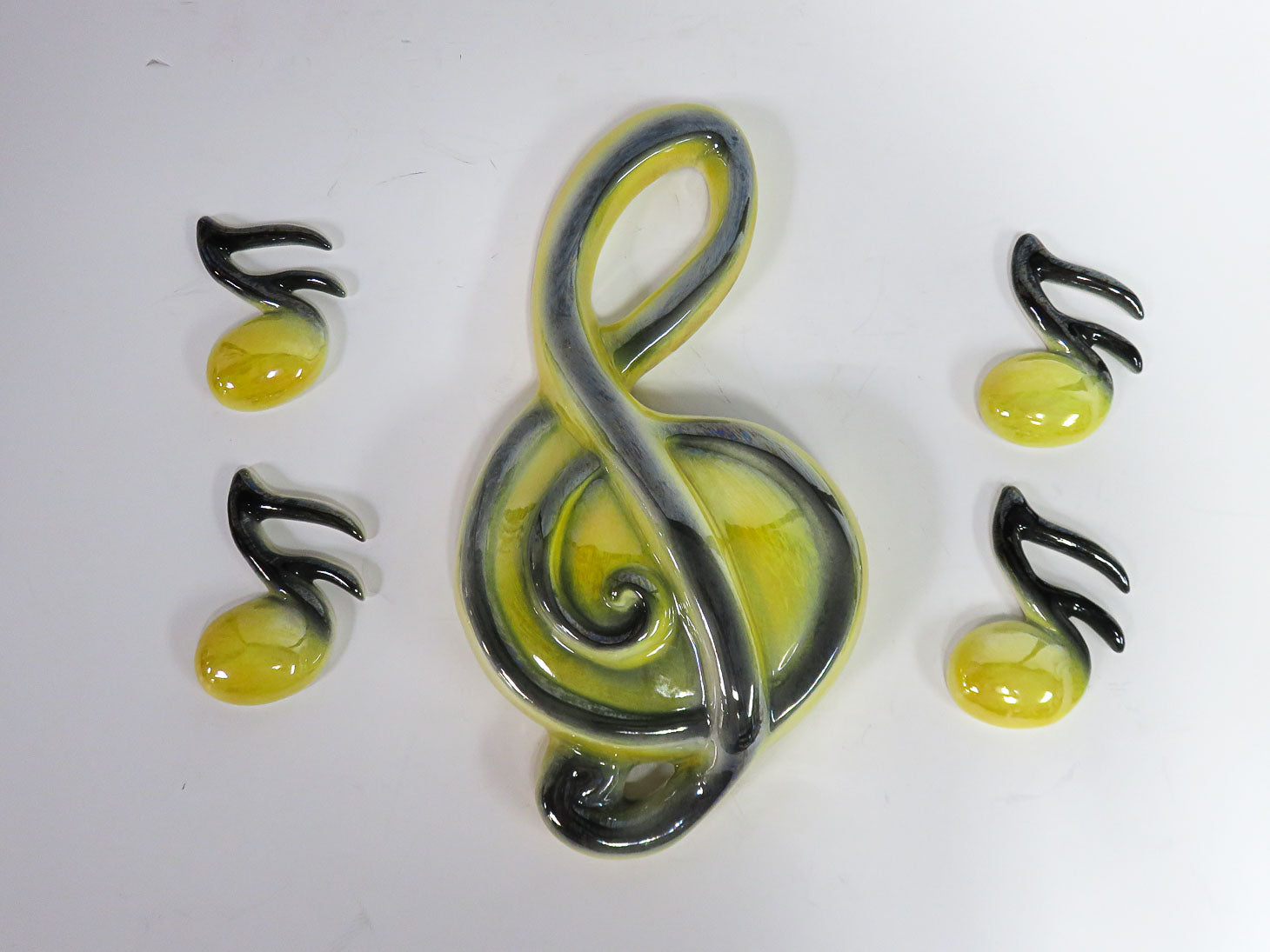 Item Number: 28982-8 5-pc. set, yellow and grey luster finish treble clef with four 16th notes. Hand glazed. 7" x 13"