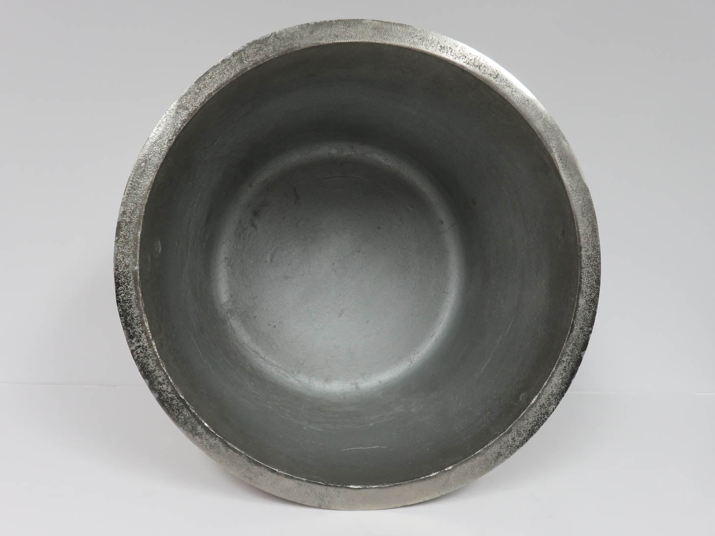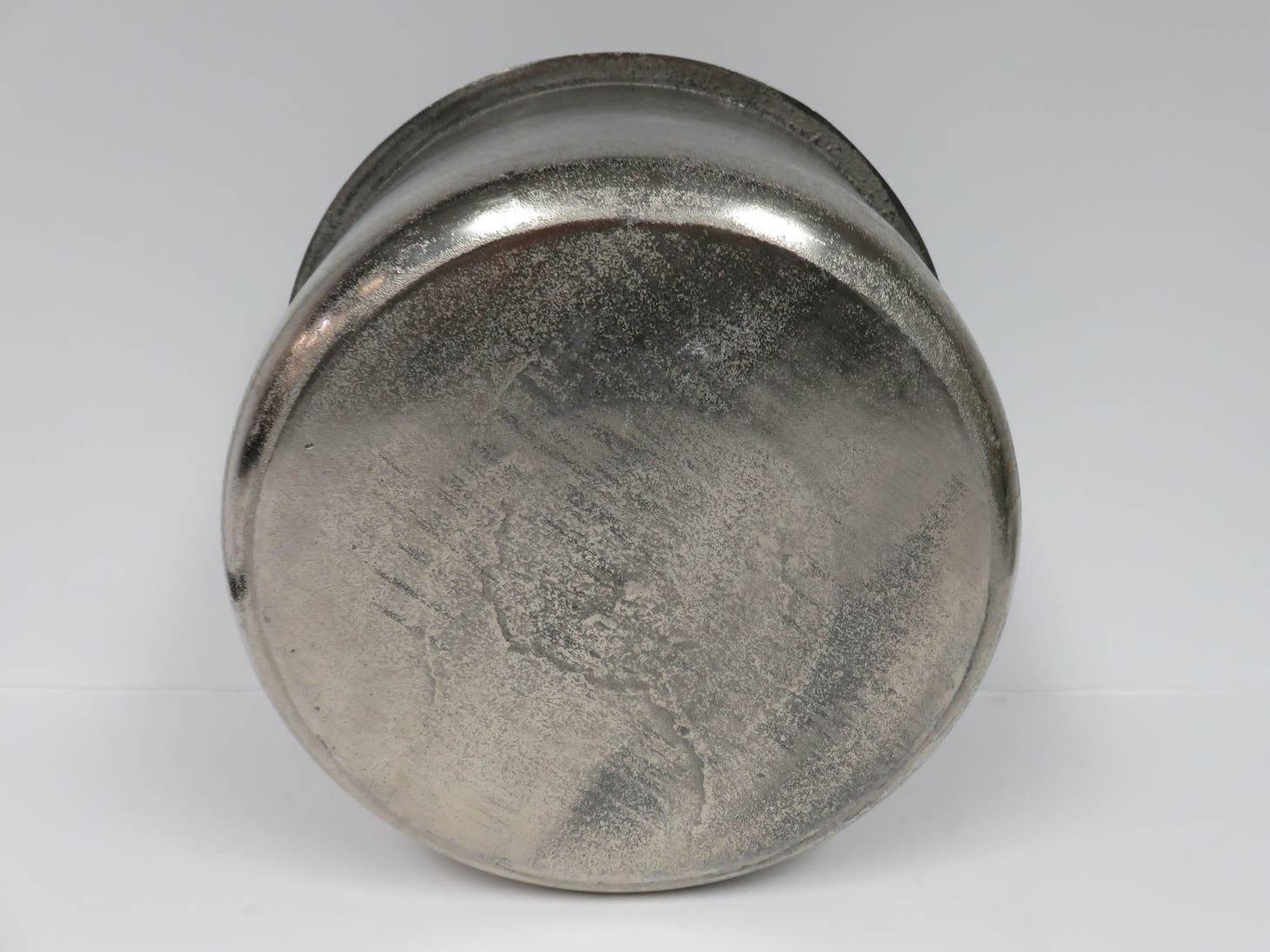 Silver with round flat rim, textured finish
