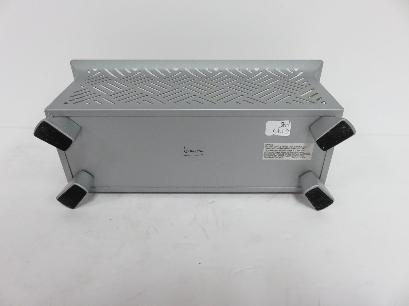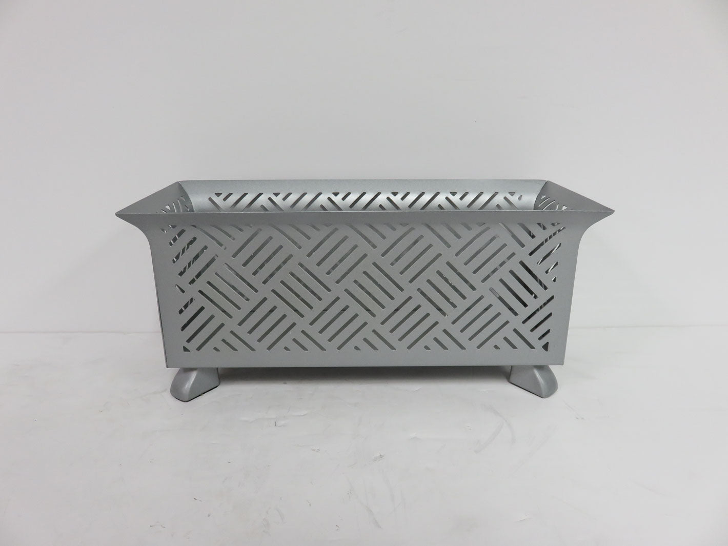 Item Number: 6175-146 Rectangular shaped footed candle holder with geometric stamped steel design, new in box. 9.75" x 4" x 4.5" H