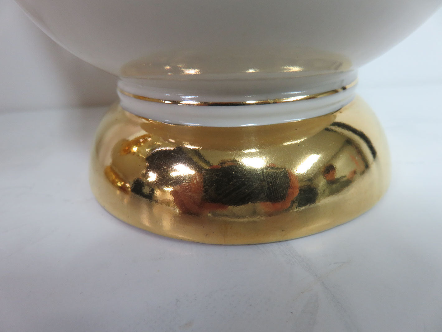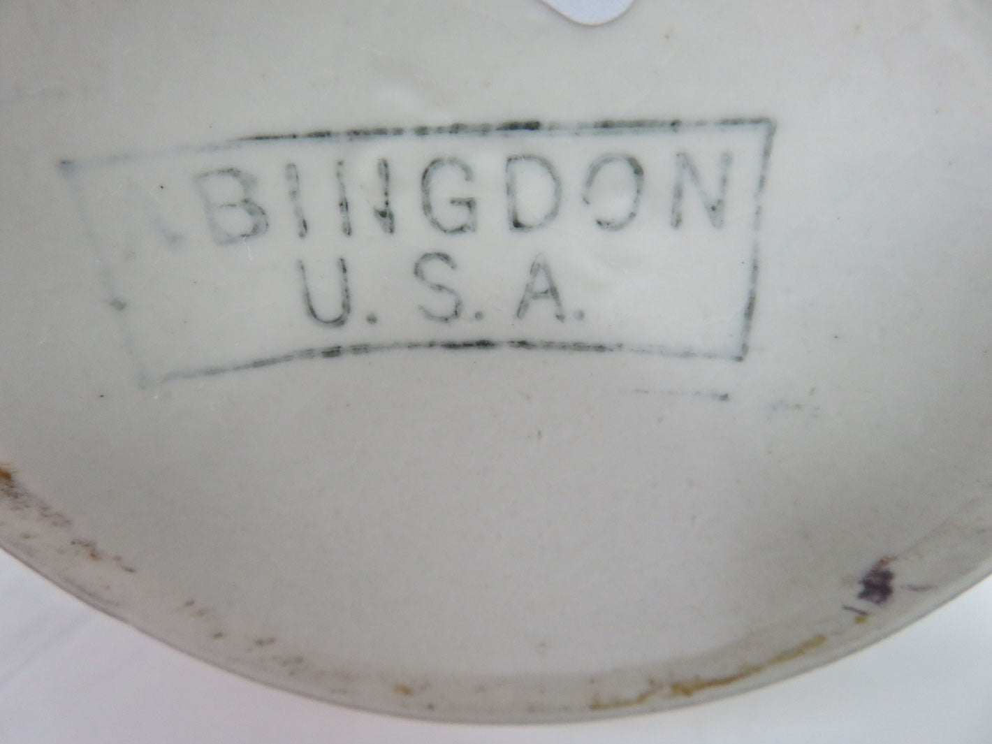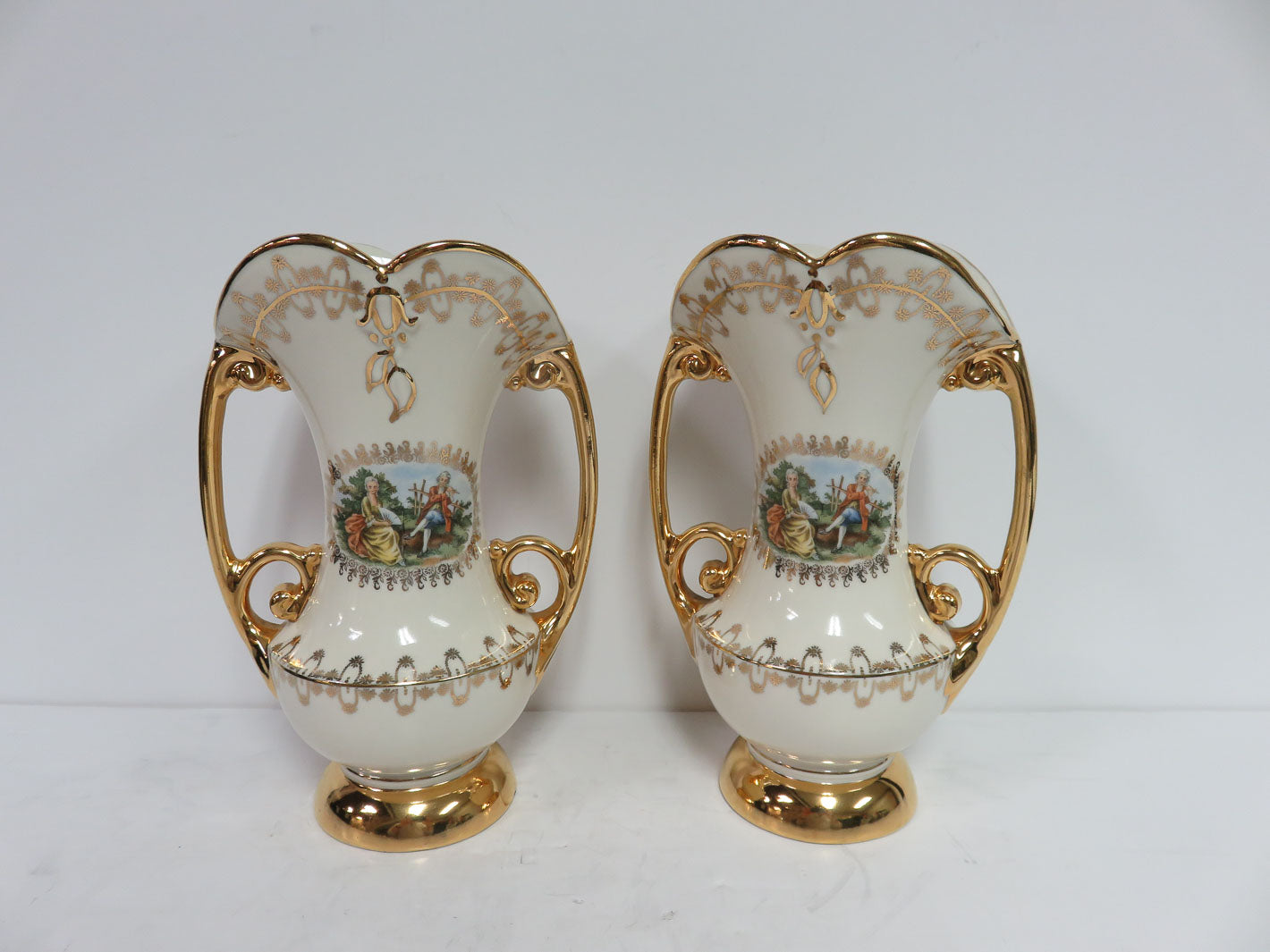 Pair of vintage Abington with Victorian courting couple scene, gold trim.