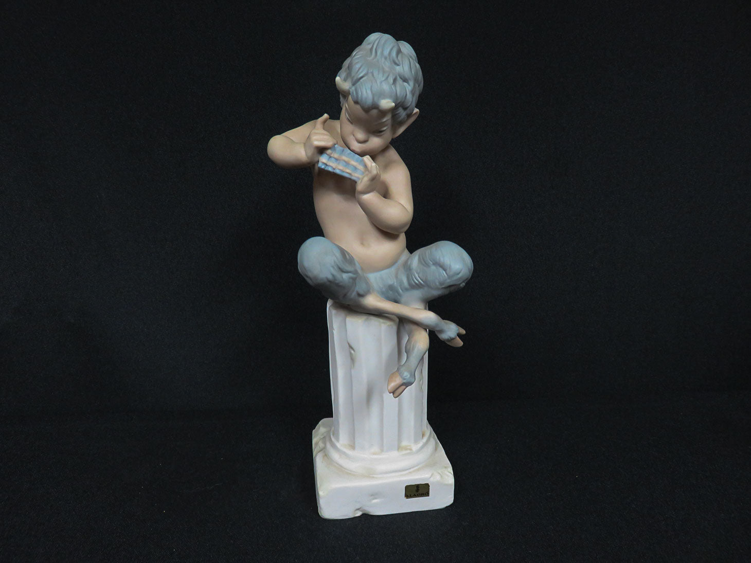 Satyr Pan playing a flute sitting on a column. #1007 Discontinued.