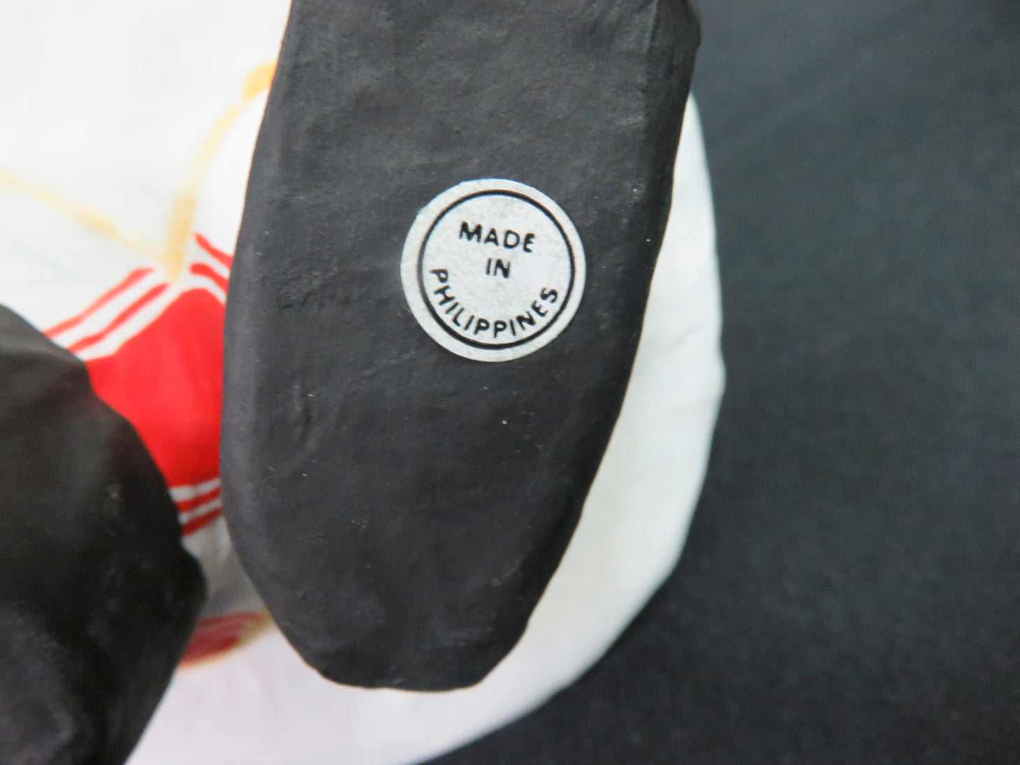 Set of 2, Hand painted, one in polka dot coat. One in red and white striped coat.