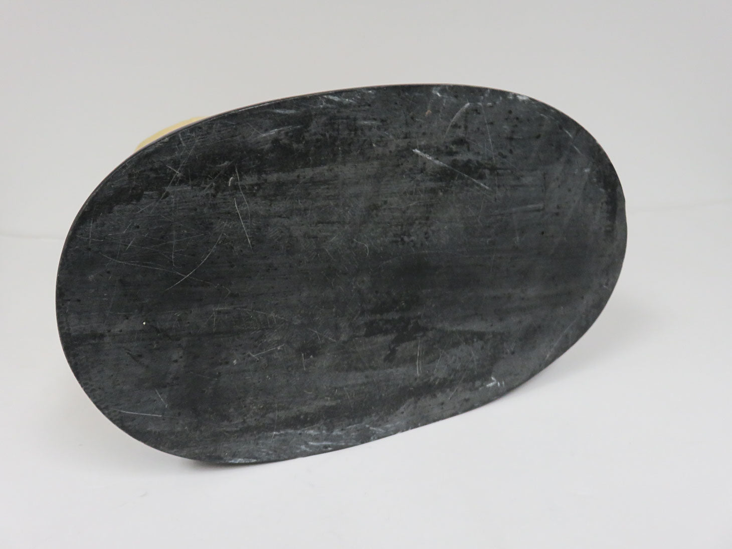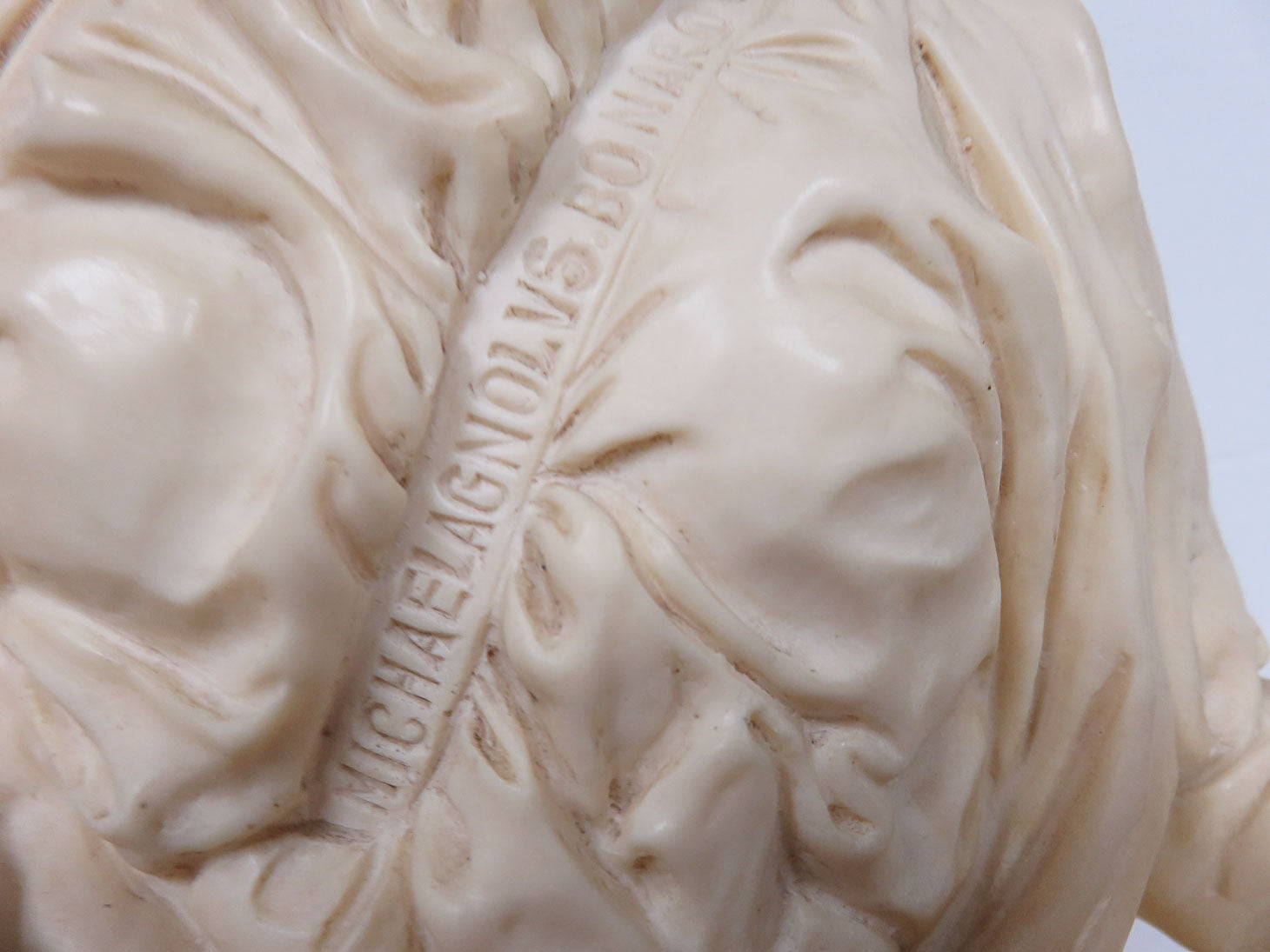 Replica, molded in fine detail in an antiqued cream finish. Mounted on black base.