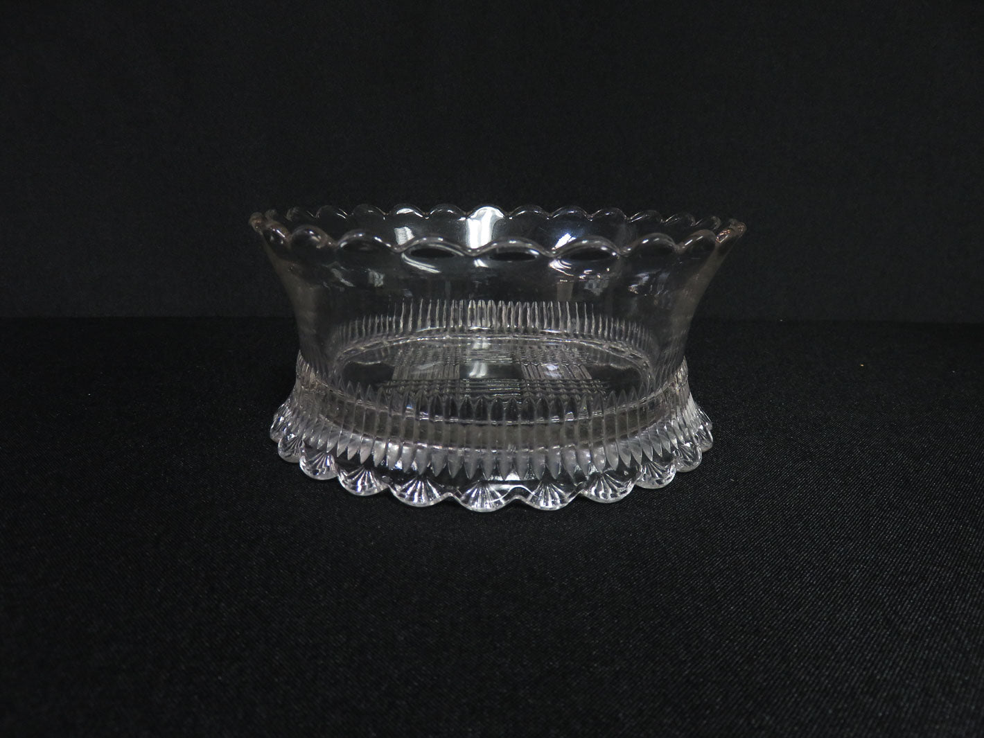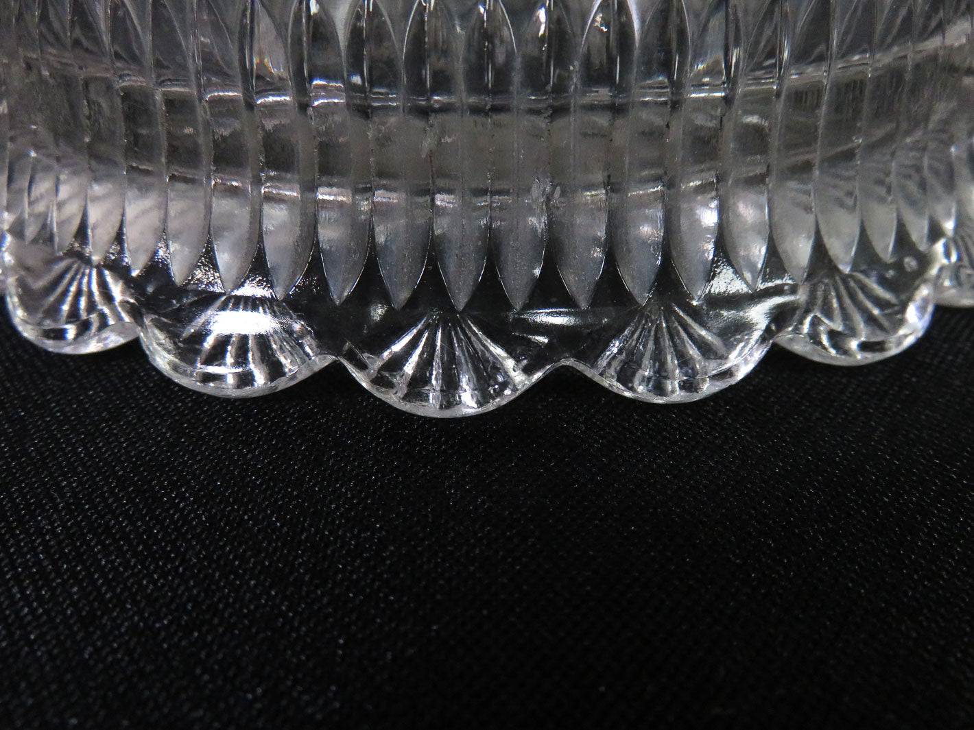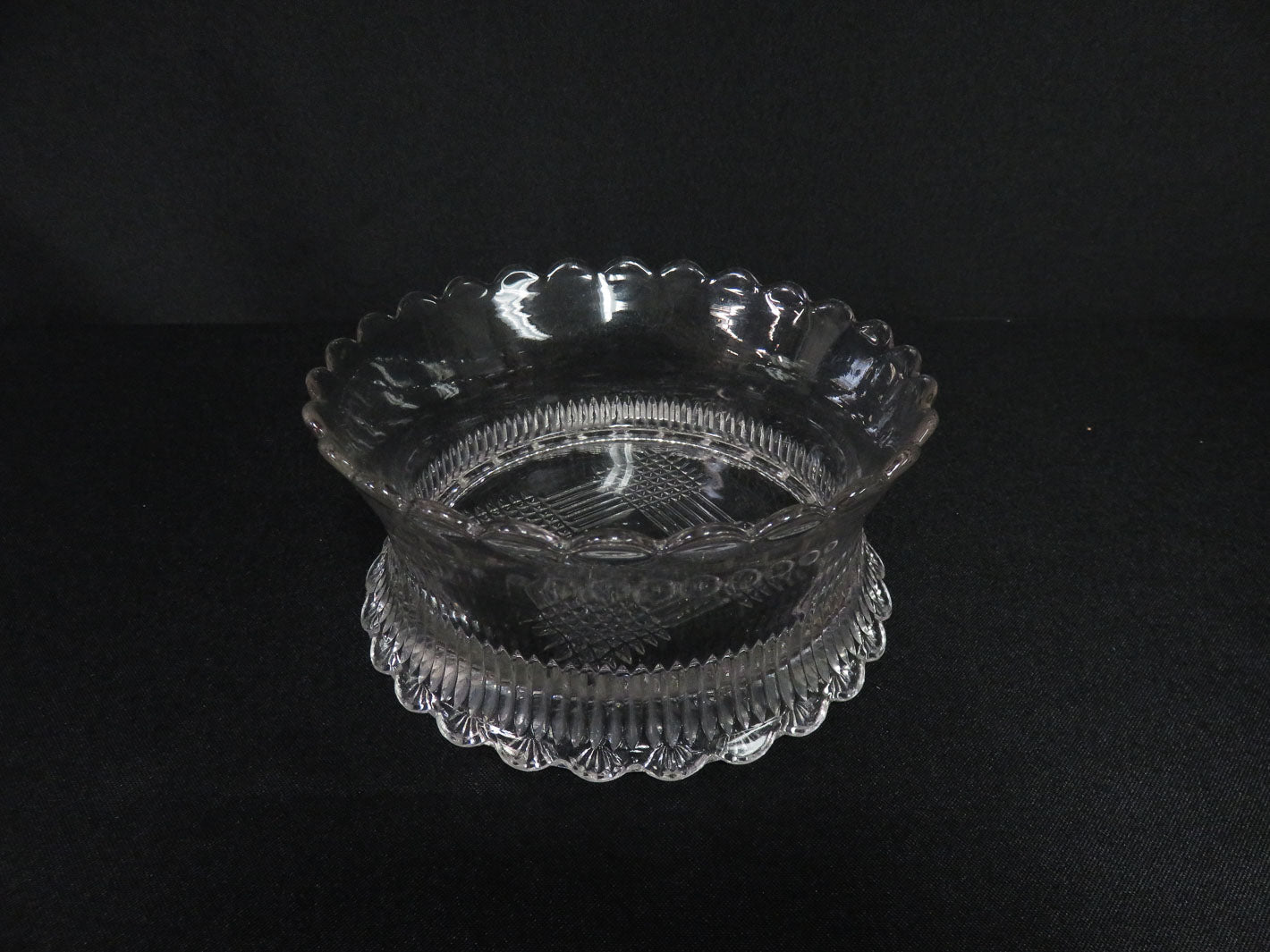 Scalloped rim and base, clear, crisscross pattern base, slighted tinted
