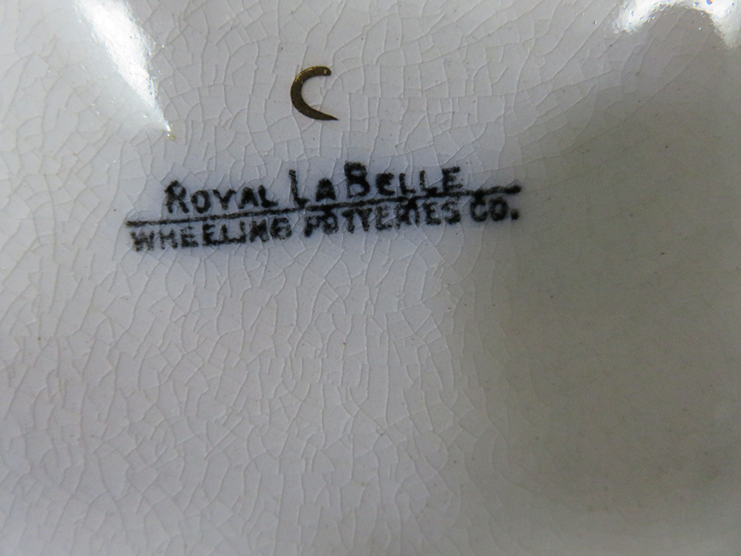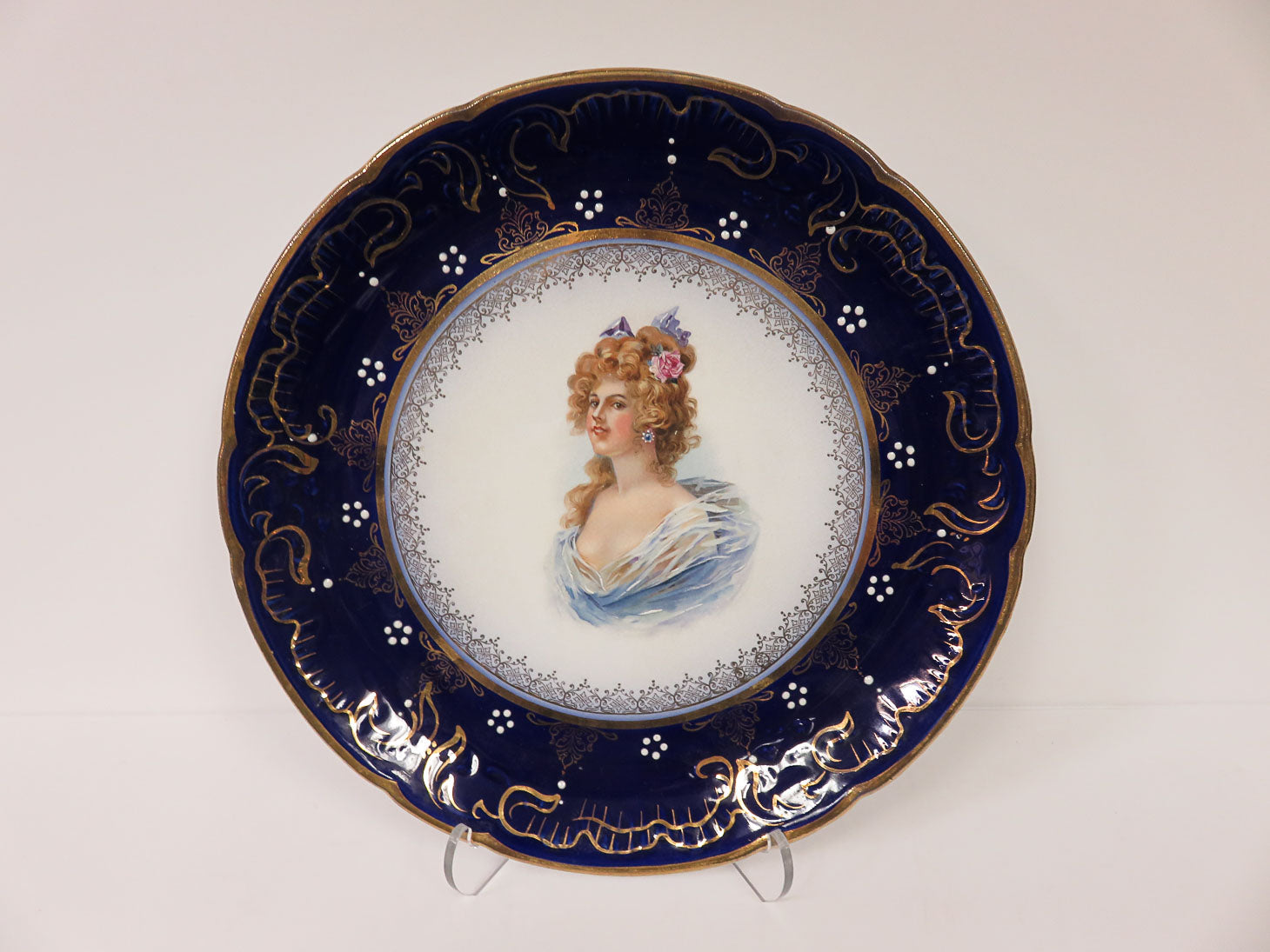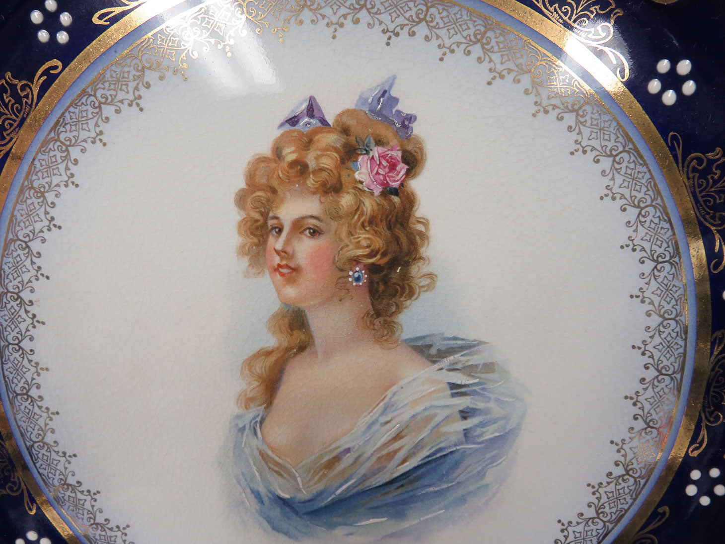 Wheeling Potteries Co. portrait of woman with cobalt & gold rim