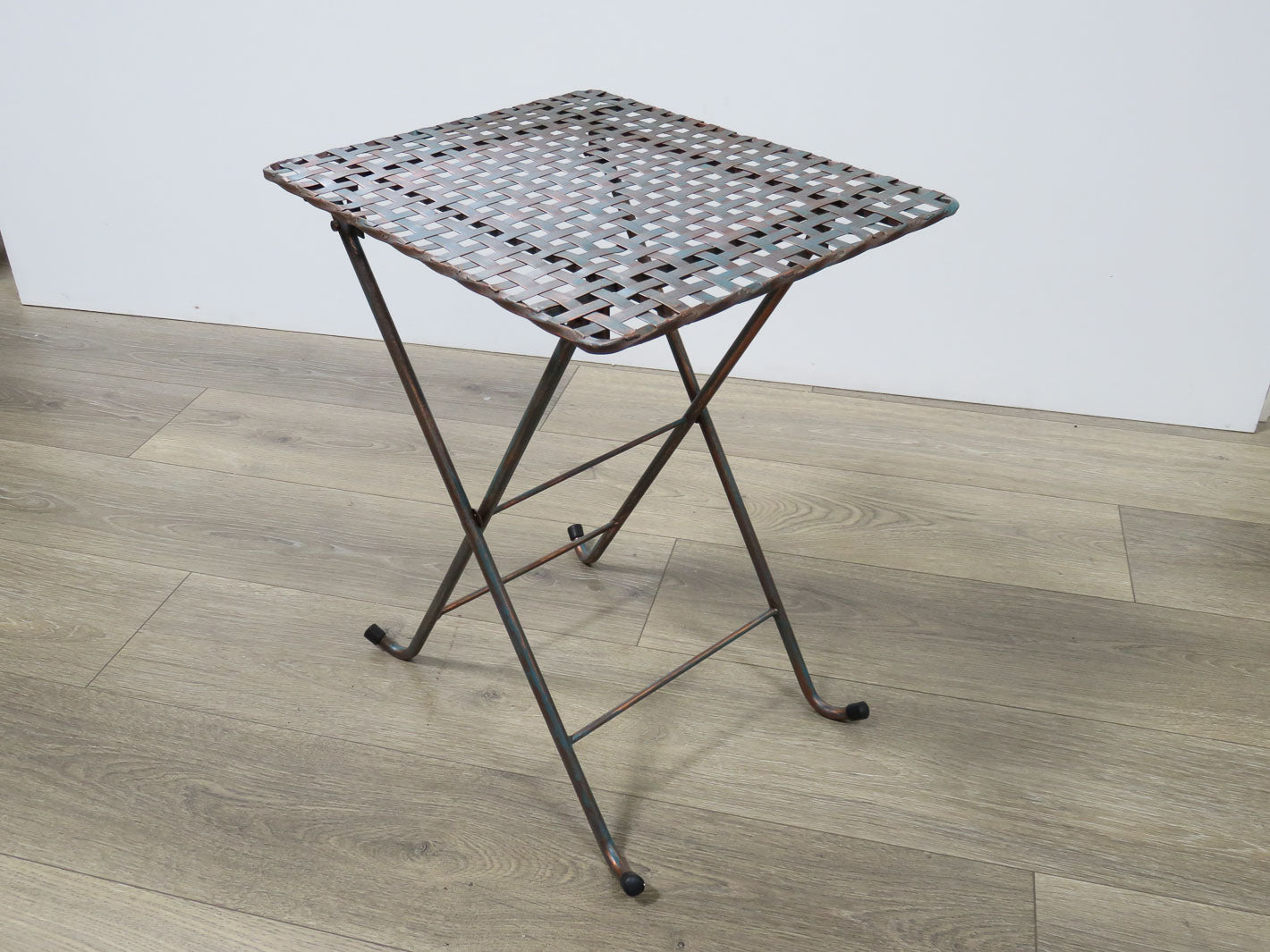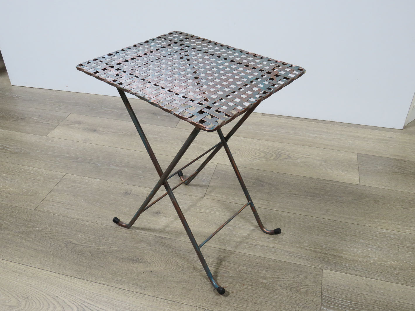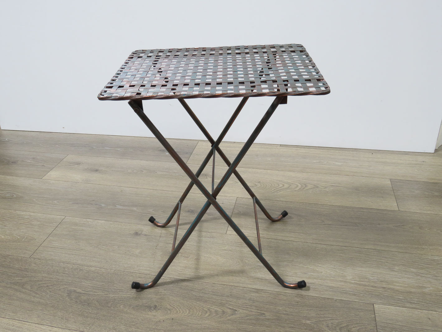 Item Number: 2022-57 Basketweave top, coppertone patina finish. Two available. Sold separately. #2022-58. 16" x 13" x 20"