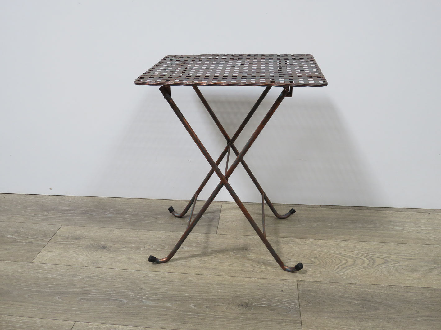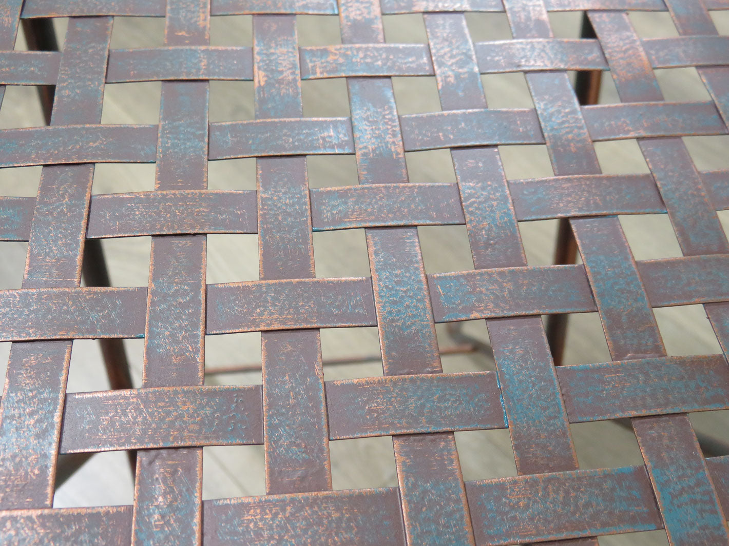 Item Number: 2022-58 Basketweave top, coppertone patina finish. Two available. Sold separately. #2022-57. 16" x 13" x 20"