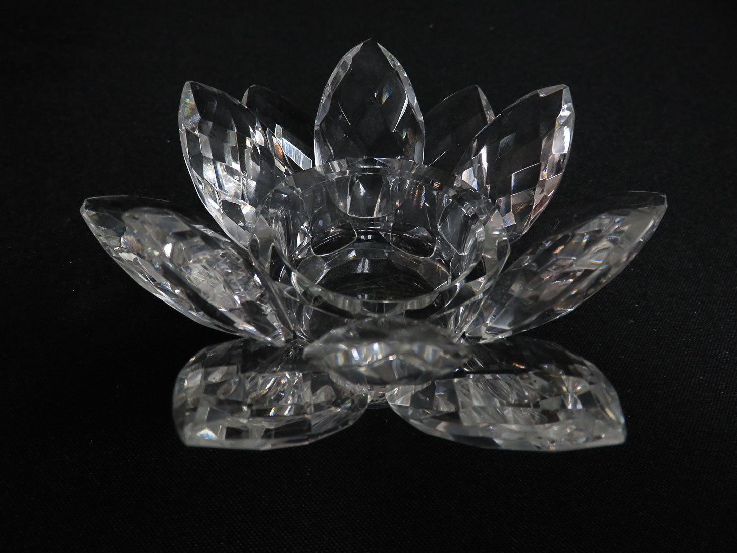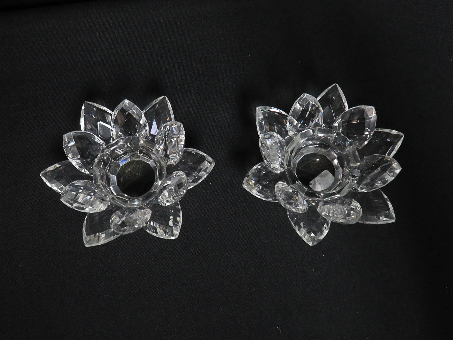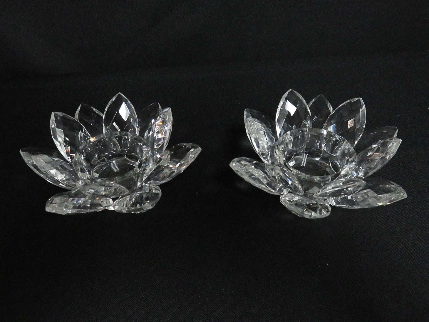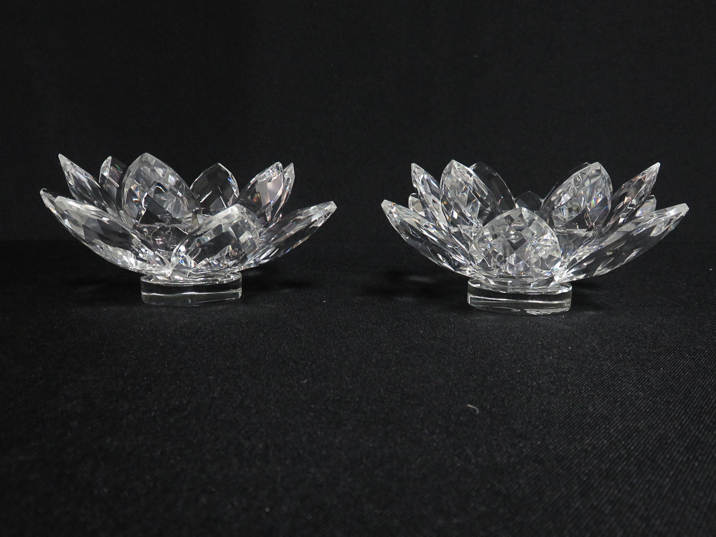 Pair, clear, faceted lotus design