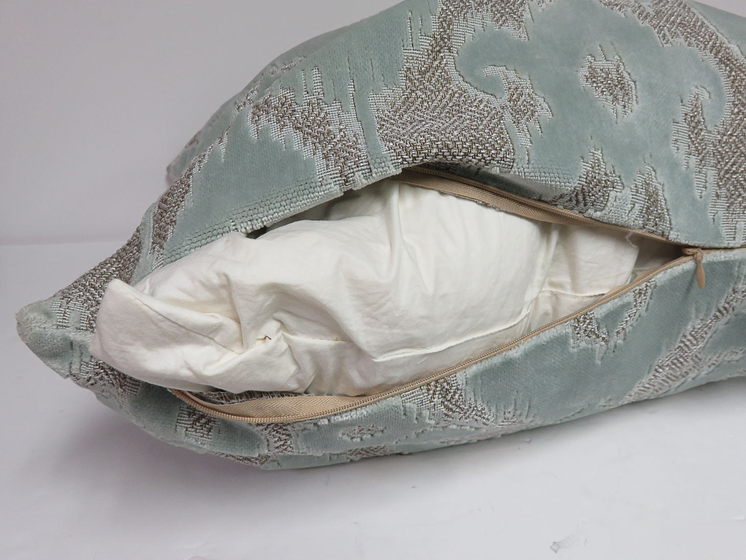 Item Number: 25677-410 Aqua with herring bone pattern by Z Gallerie. Zippered with feather insert. 23" x 22"