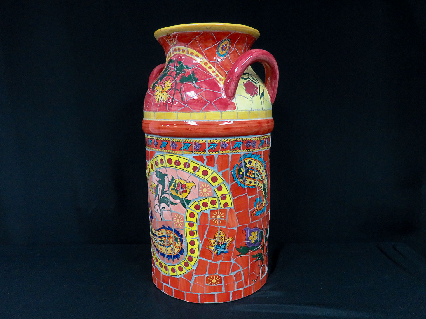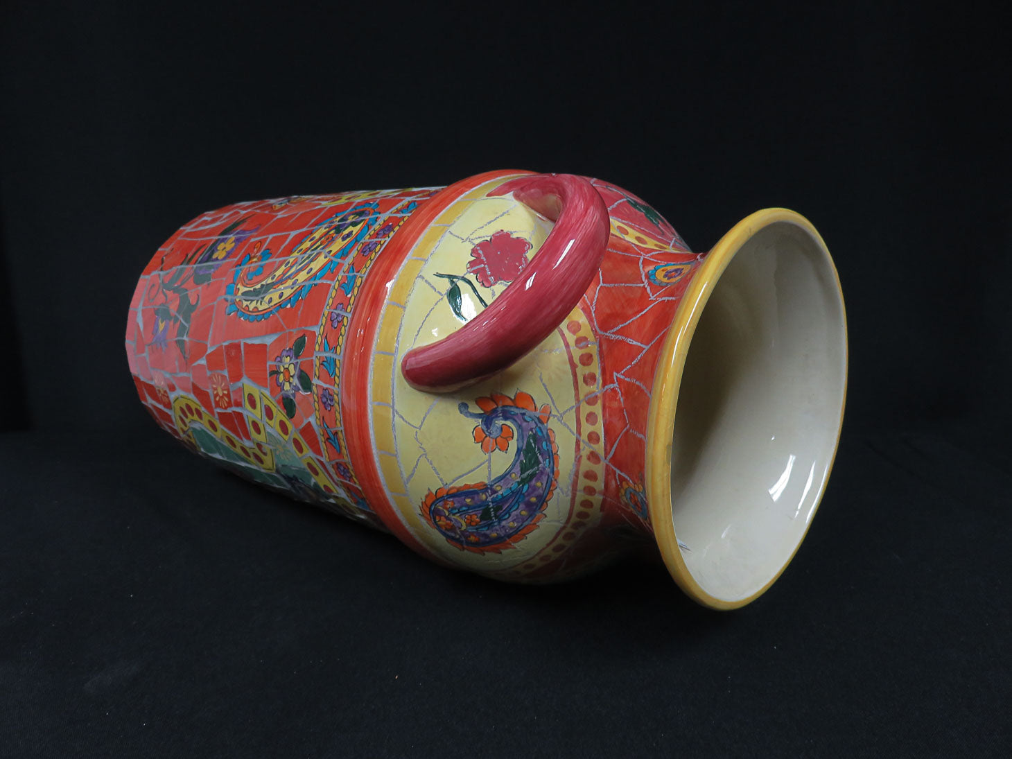 Item Number: 25677-399 Multi-colored mosaic pattern with flowers, orange, yellow. Unique pattern on each side.10" x 18.5" H