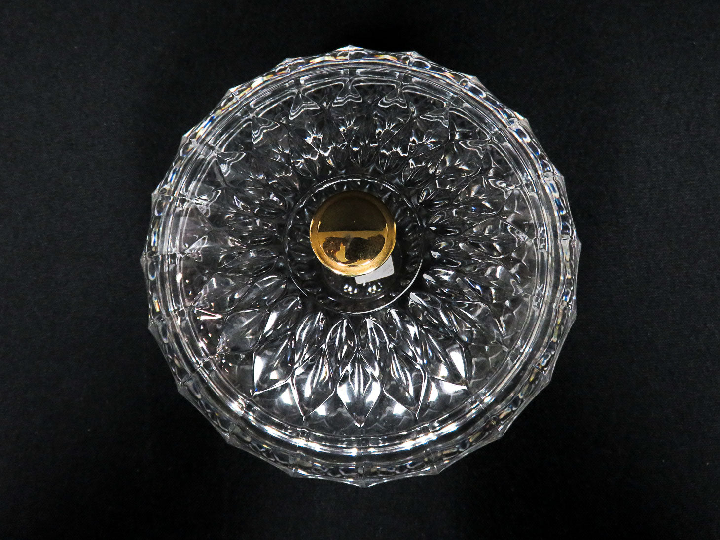 Round, diamond cut, with lid and gold tone handle, 2pc 5" x 3.5"