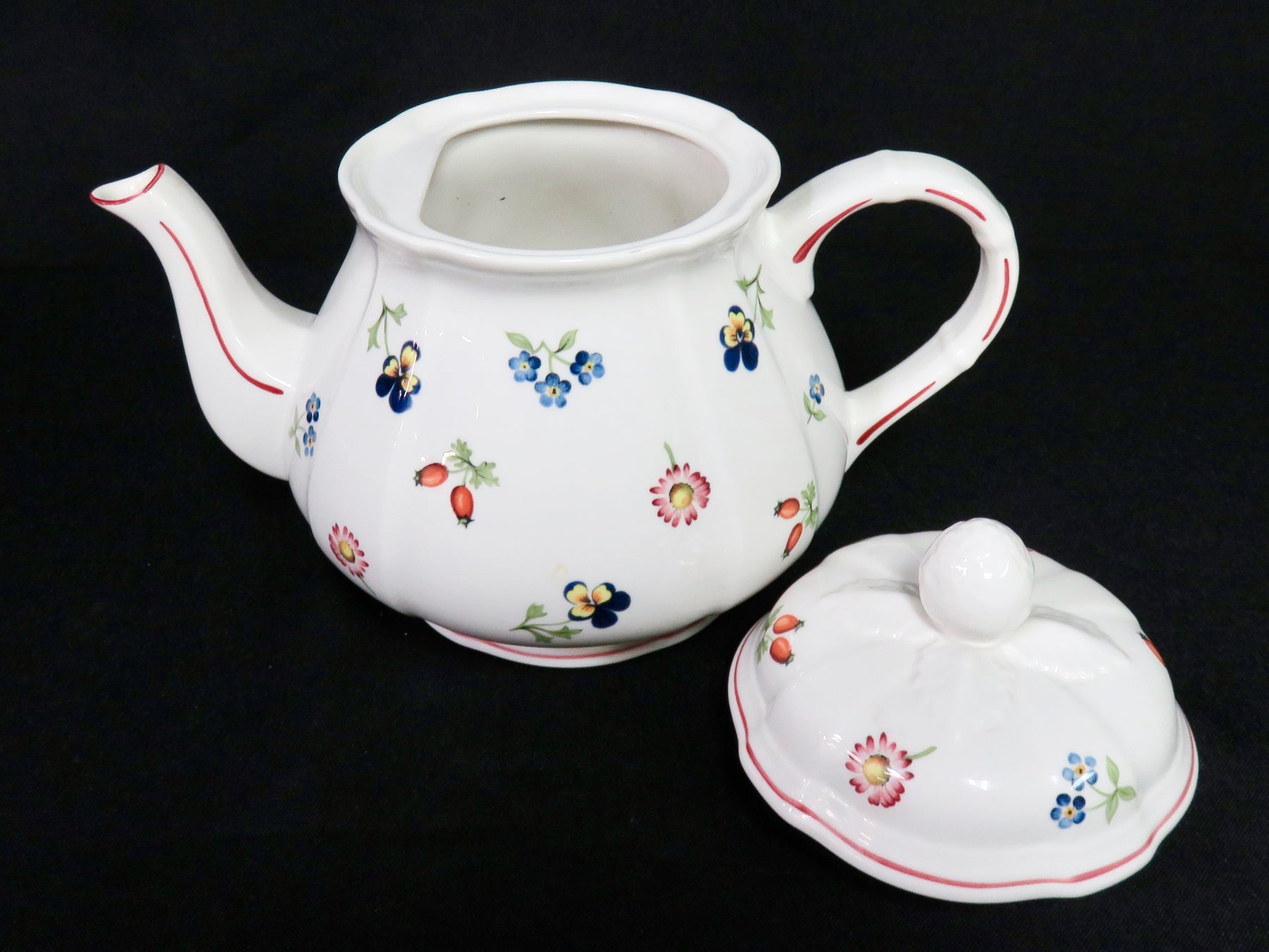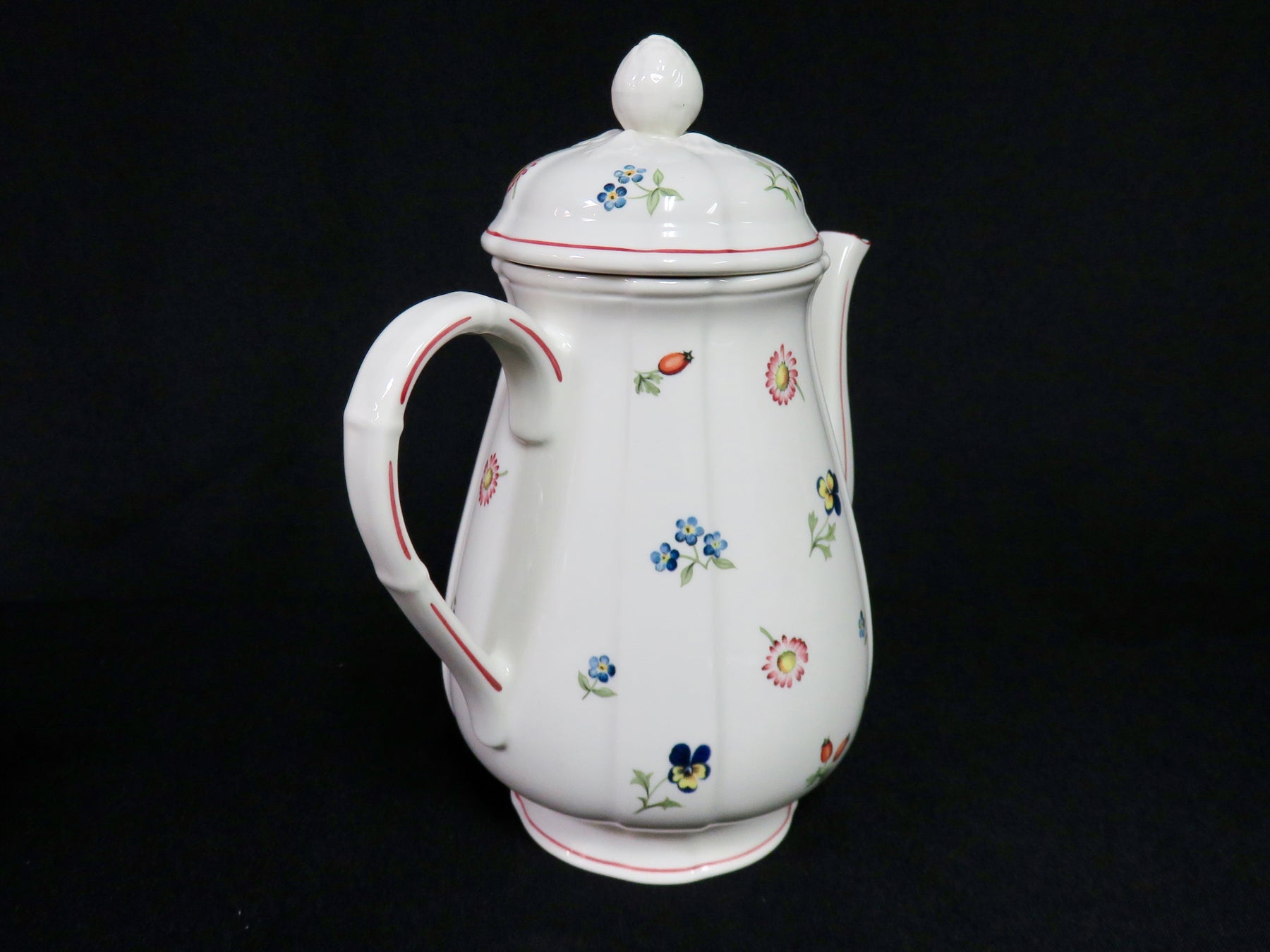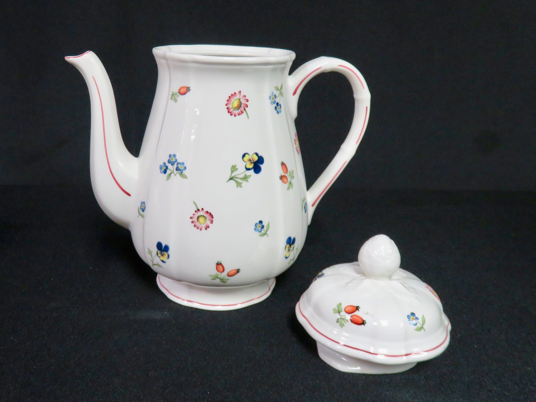 Item Number: 9992-6142 Petite Fleur pattern. Delicate meadow flowers on white. 7" H teapot & 9" H coffee