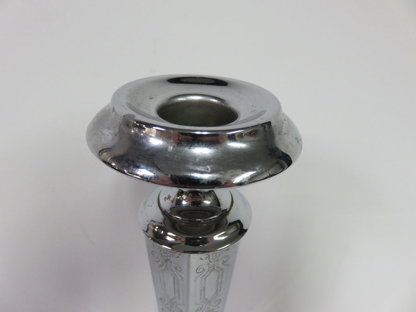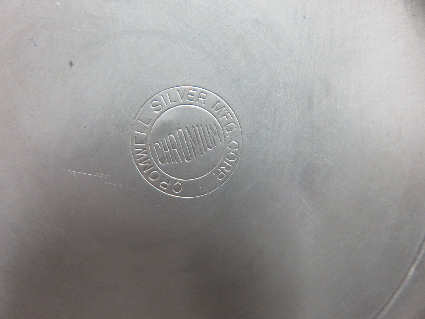 Silver with etched scroll design, round base, by Cromwell Silver Mfg.