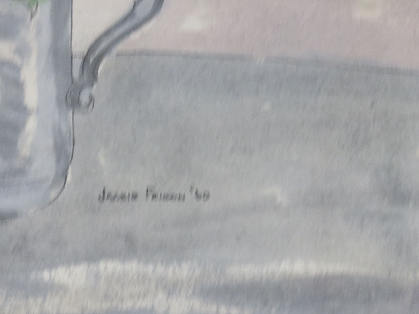 Item Number: 27676-86 Handled vase on a table with yellow, pink, red and blue flowers, by Jackie Feigon 26" x 24"