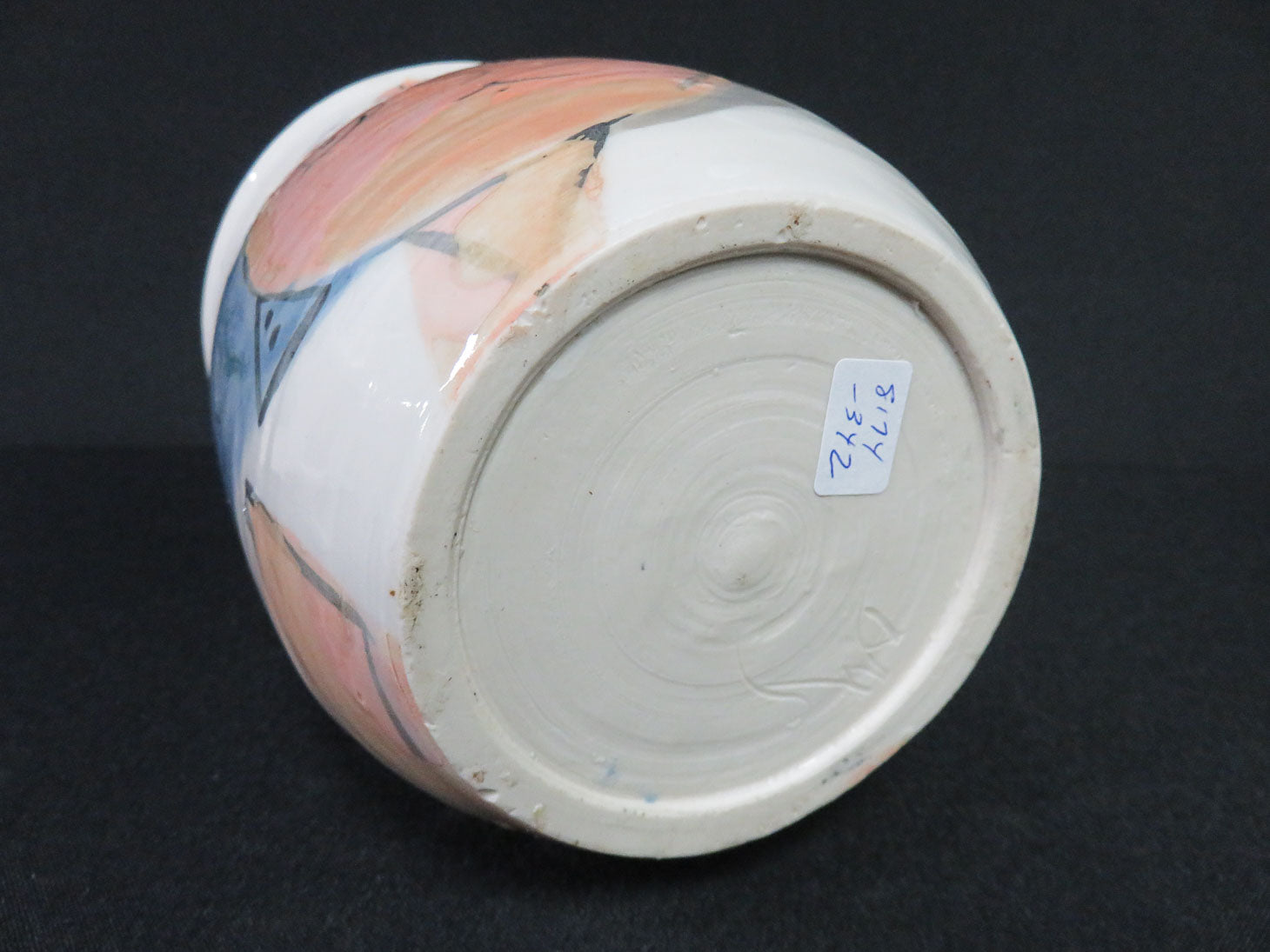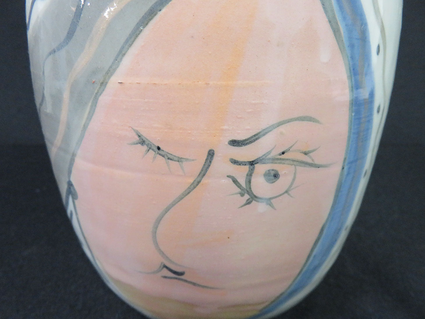 Cream glaze, hand painted with two womens' faces. Vase/utensil holder
