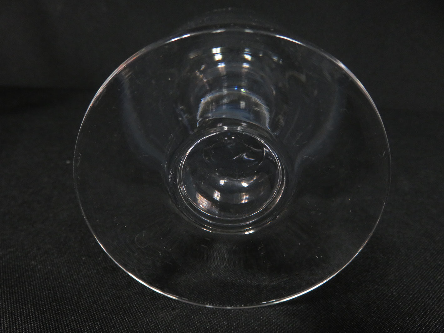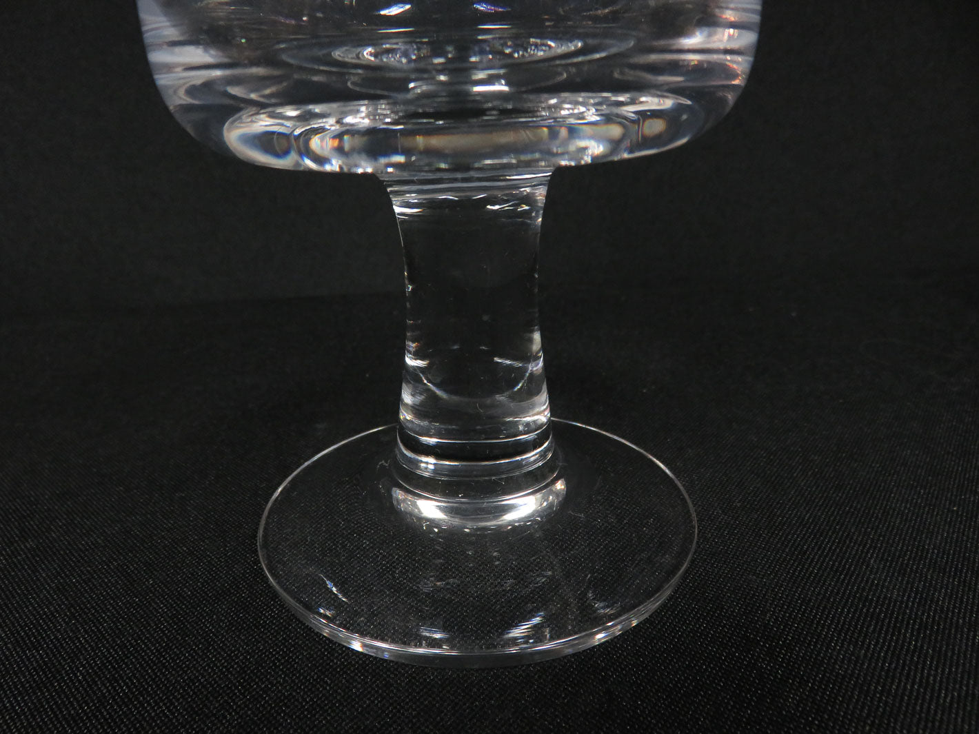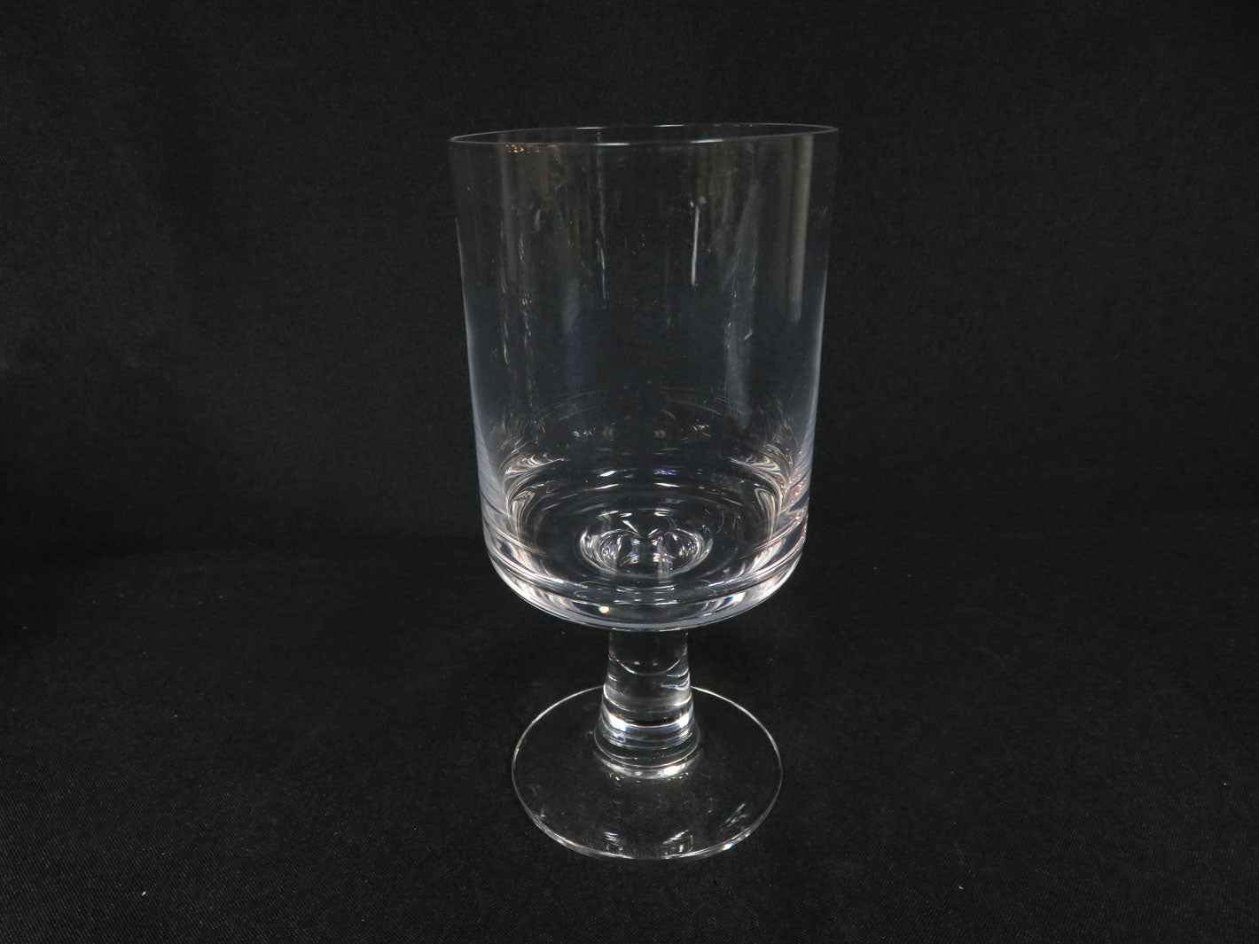 Set of 9, barrel-shaped water glasses, short, thick stem on a round base