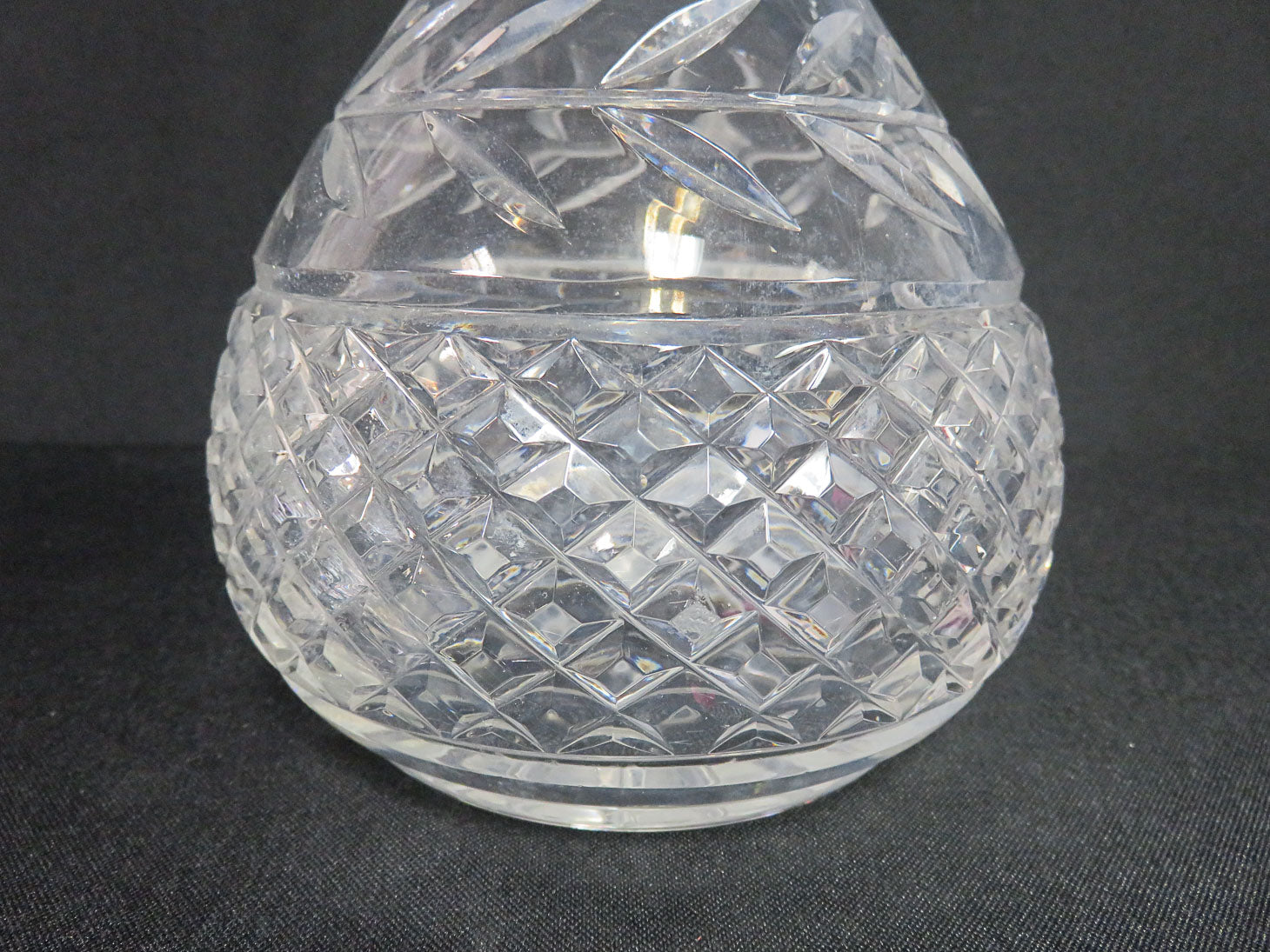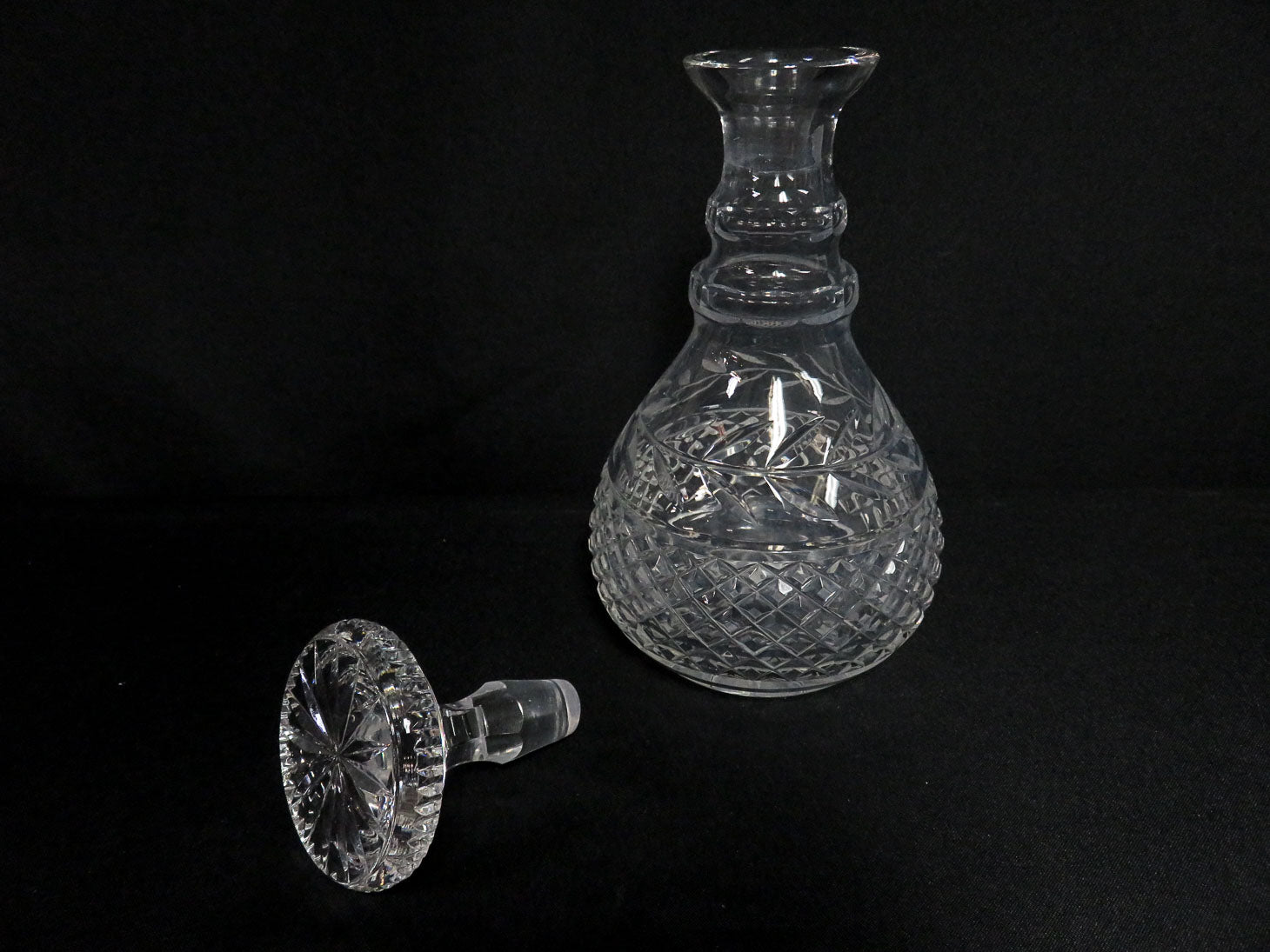Round, diamond pattern below band of etched leaves, flat faceted stopper, 2 pc