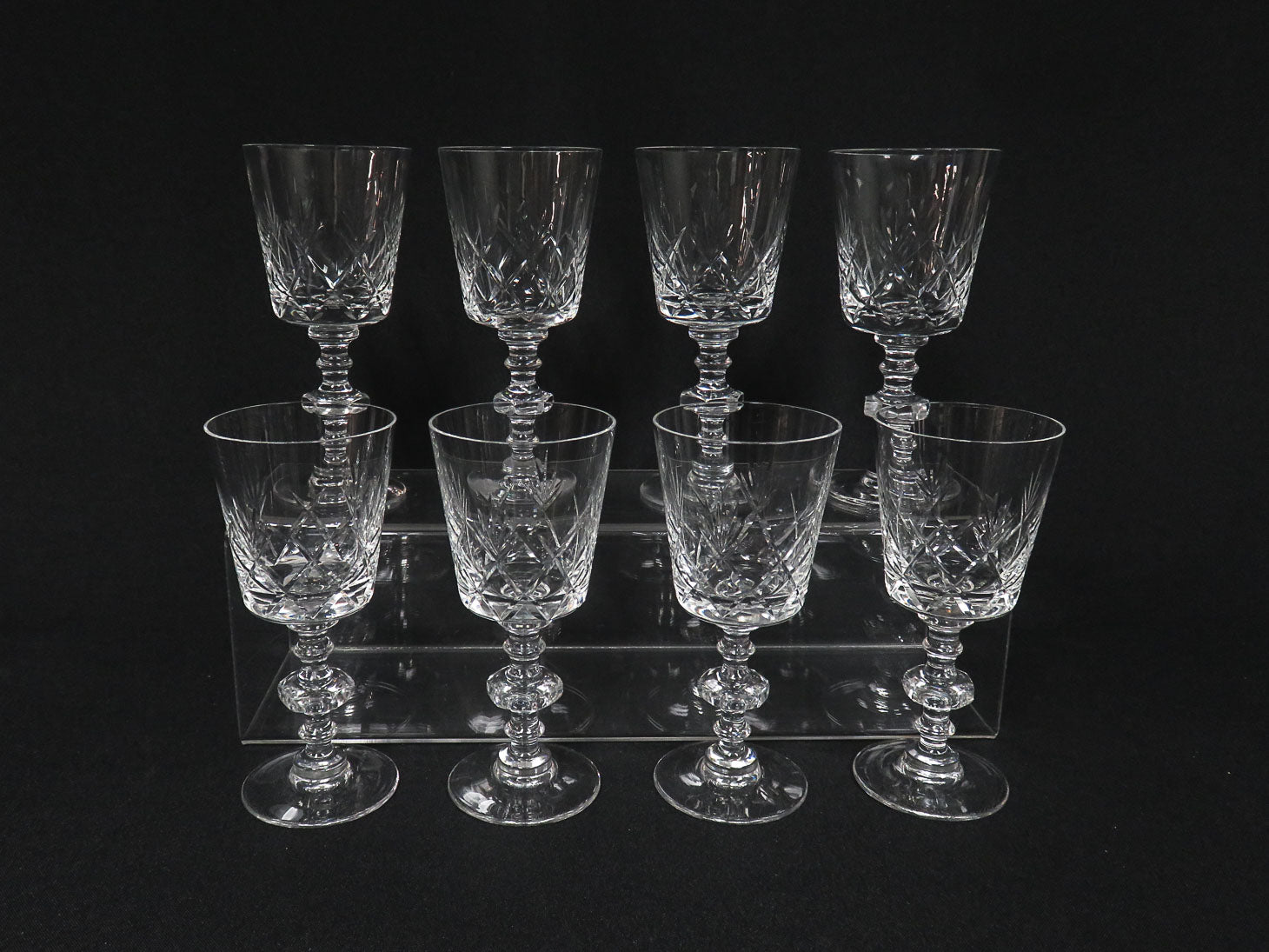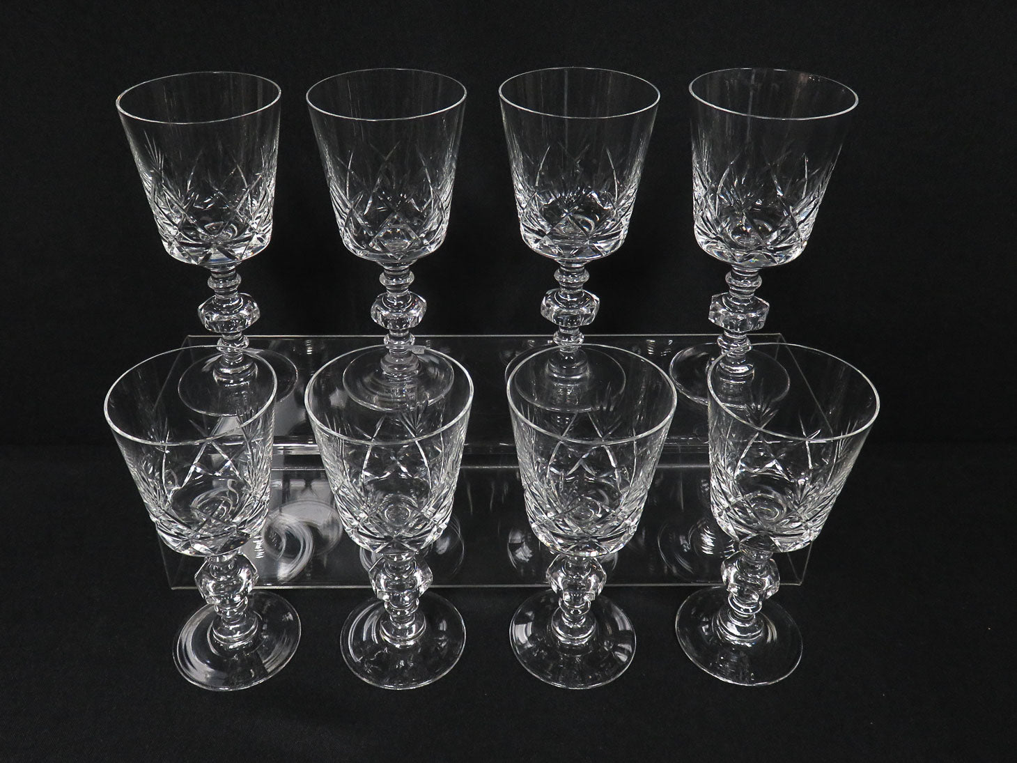 Set of 8, fan and cris cross pattern. Faceted knob stem.