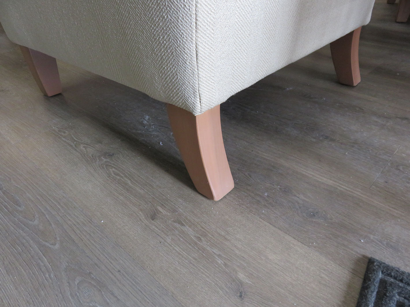 Item Number: 29972-6 Beige herringbone fabric on base, brown tweed fabric on seat and button-trimmed back cushion. With one geometric stripe lumbar pillow. Two available. Sold separately. #29972-15. 29.5" x 32" x 35.5"
