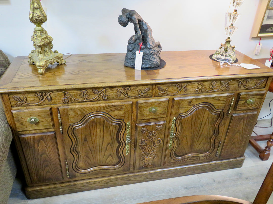 Baker Carved Oak Buffet Cabinet