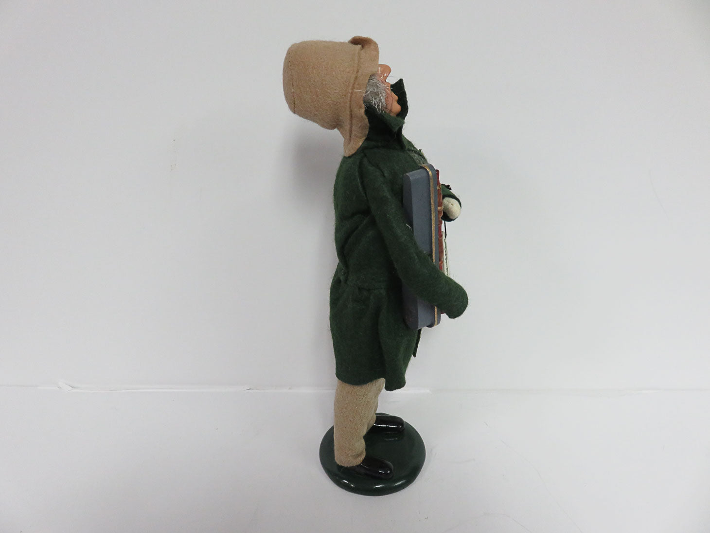 Man with green coat, tweed vest and musical instrument in arms, 1989