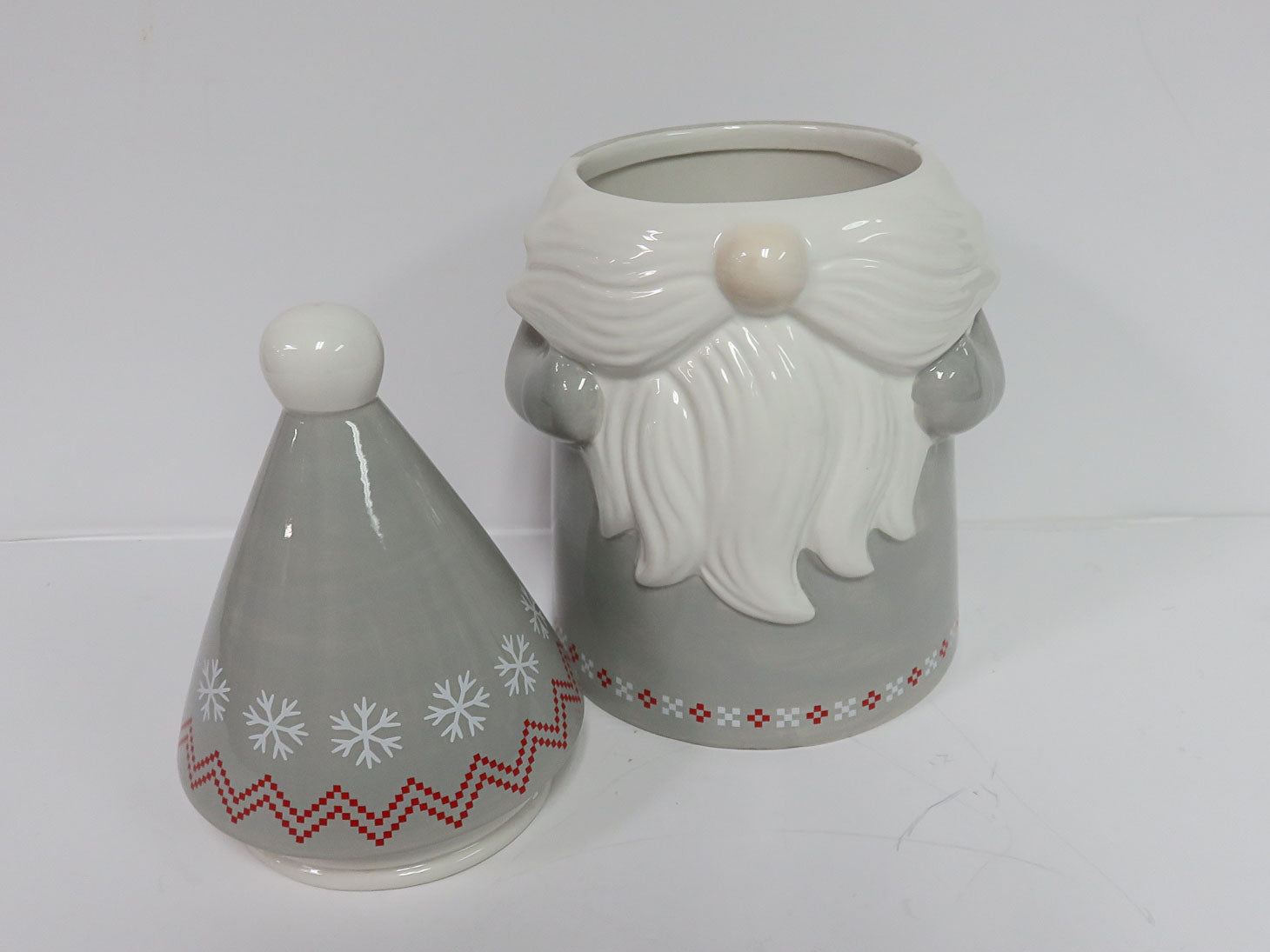 Gray background with white beard and hat lid (2 pcs), small chip on back