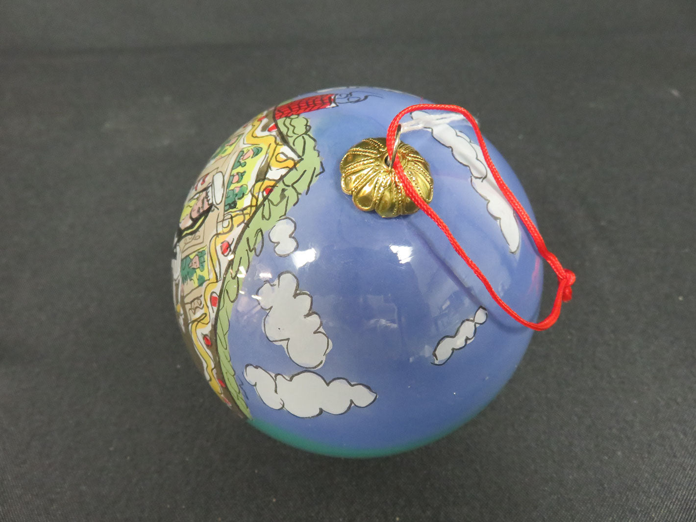"Eight Maids a Milking" glass orb, whimsical design, red hanger
