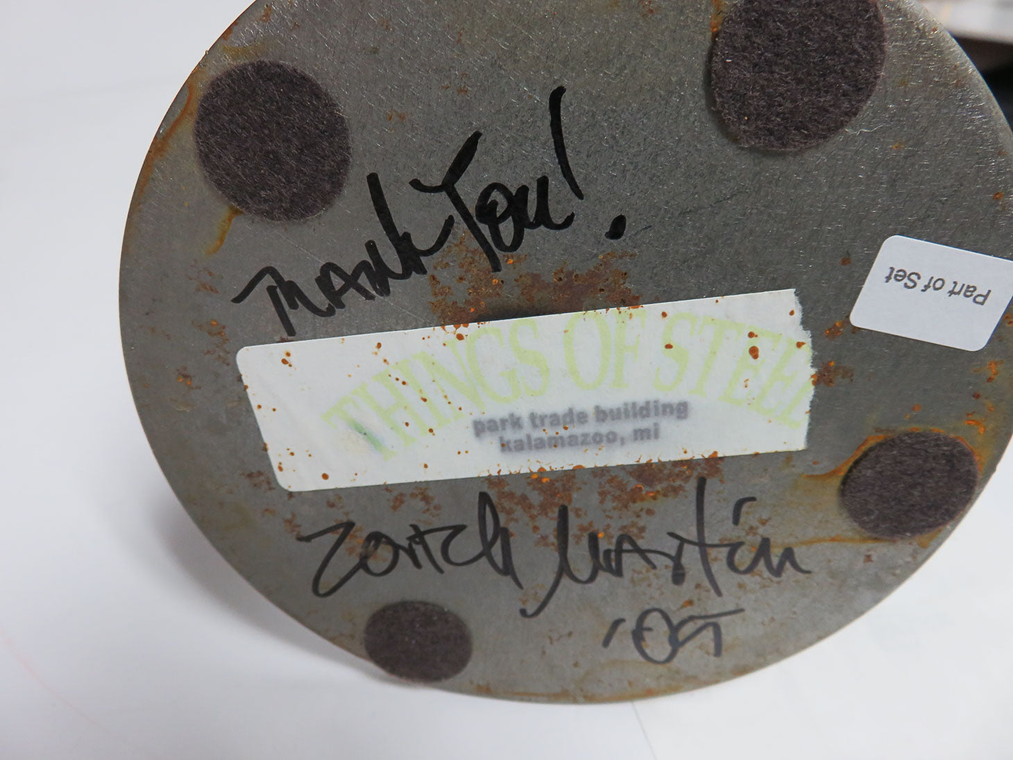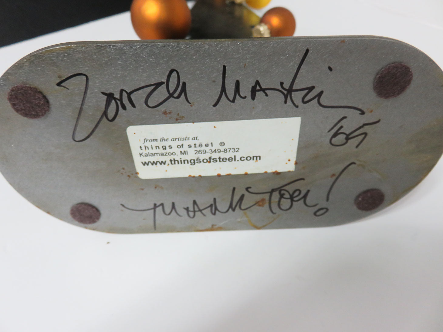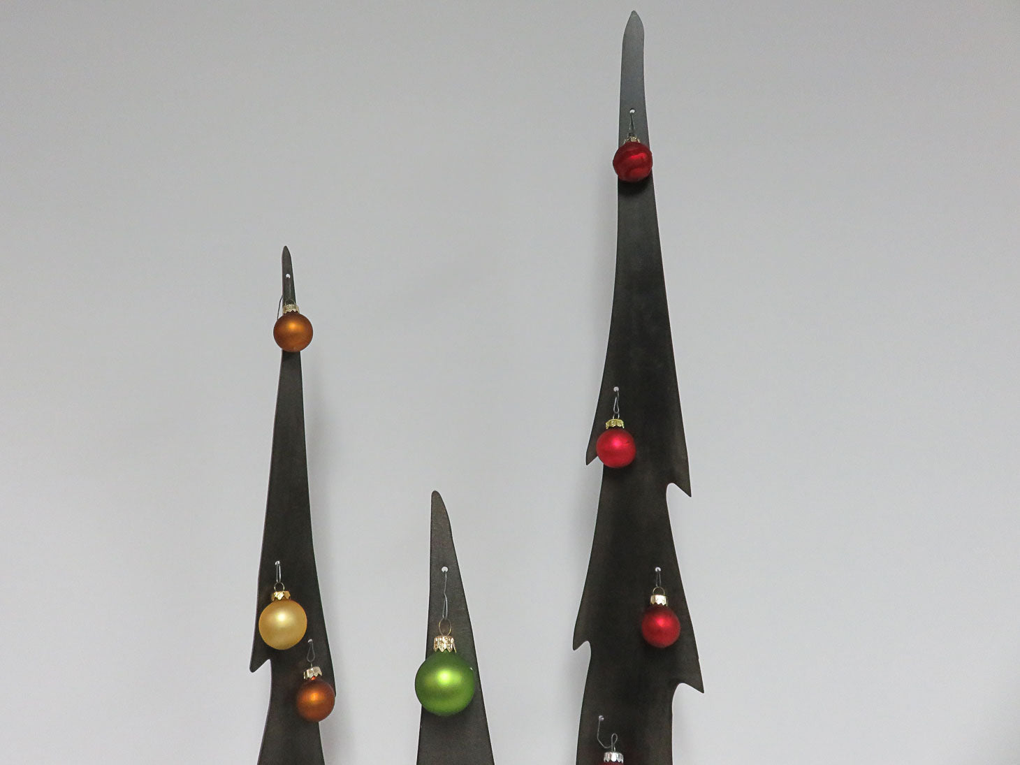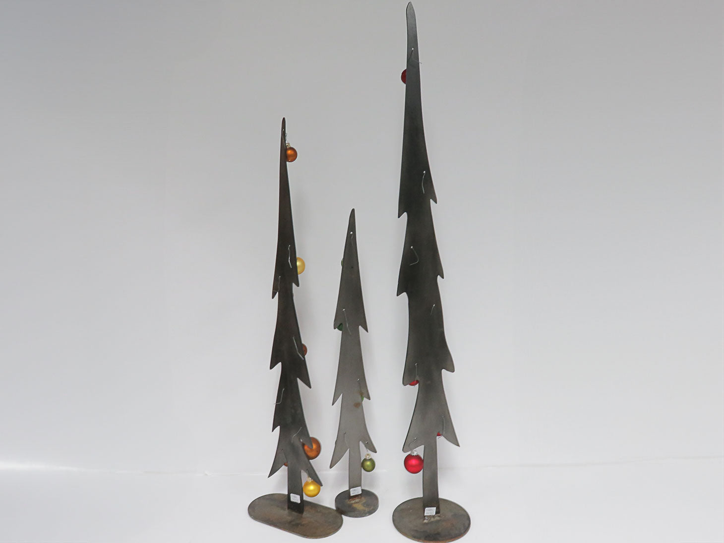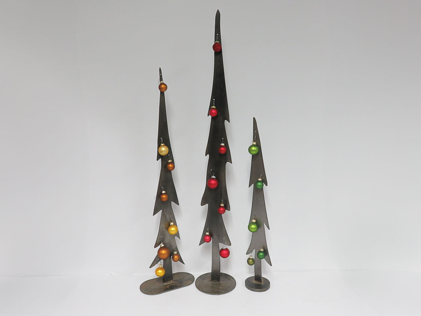 Set of 3, Metal trees with colorful ornaments, signed by artist Michelle Zorich