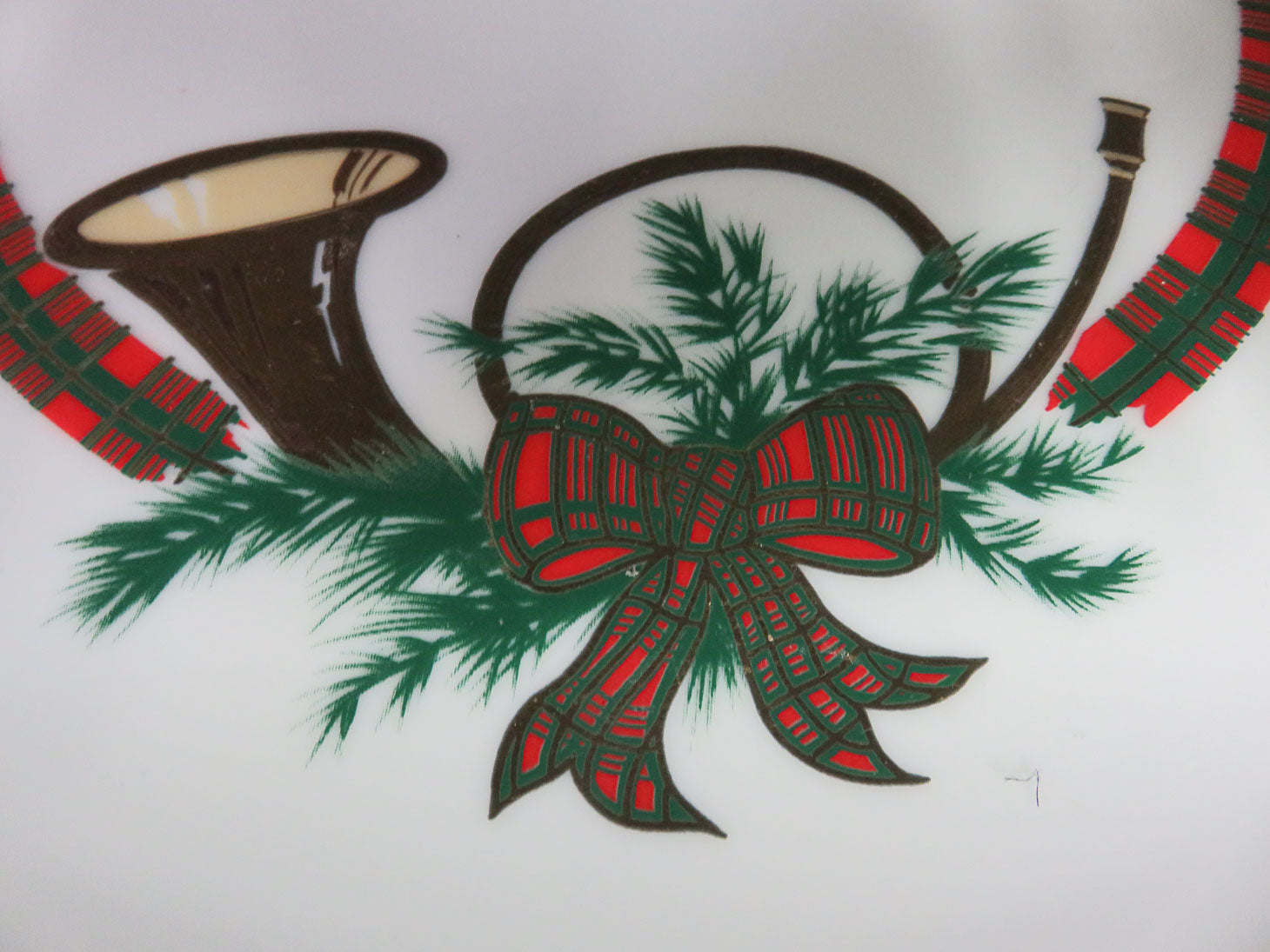 "The Hunt" plaid wreath and French horn, white pedestal base